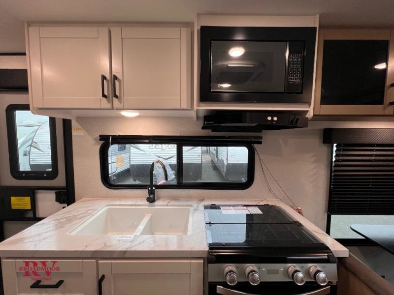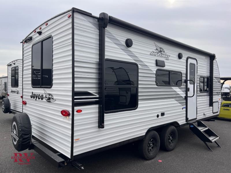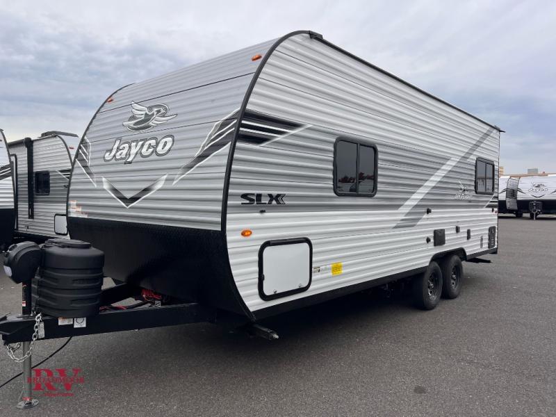 The Jayco Jay Flight SLX travel trailer is quite easy to own because it is lightweight for an easier towing experience. Built on a fully integrated A-frame with galvanized-steel, impact-resistant wheel wells, the Jay Flight SLX has quality at its very foundation. That quality continues on to the electric self-adjusting brakes, easy-lube hubs, Magnum Truss roof system, and LP quick connect. Some of what the mandatory Customer Value Package includes is backup camera prep, Keyed-Alike entry and baggage doors, and an on-demand tankless water heater