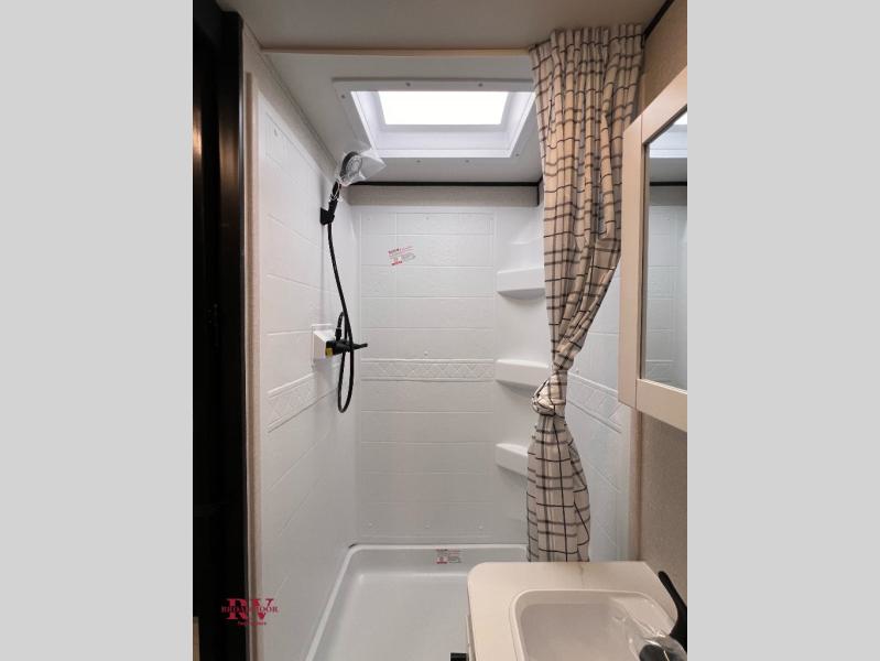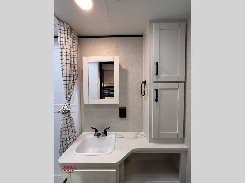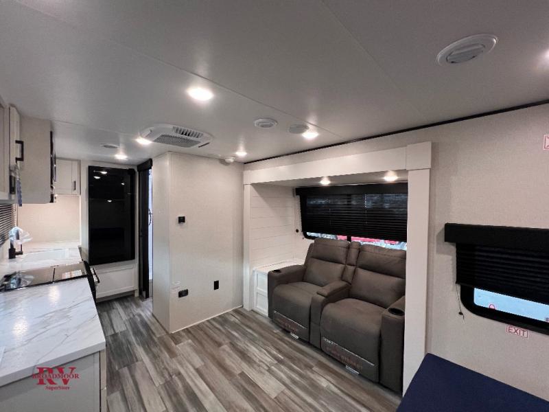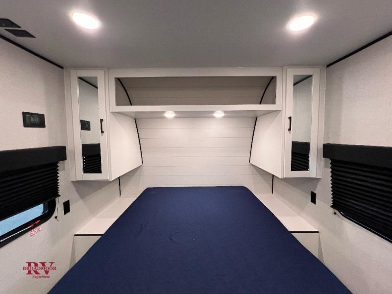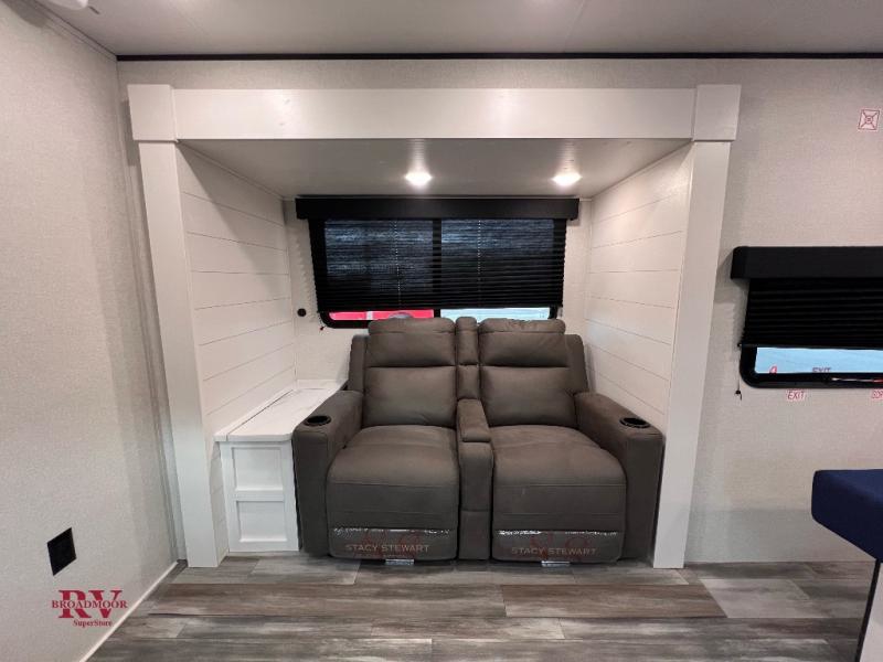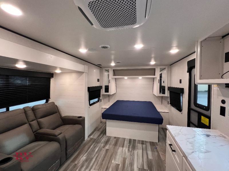 This couple's trailer will be perfect for weekend trips to the lake or extended stays at the campground. You can sleep on the front queen bed each night instead of on an air mattress, and the dual bedroom wardrobes will help keep your space organized. The theater seat is within a slide for more floor space, and the fully-equipped kitchen will allow you to make meals each day. You'll also appreciate the rear corner full bath to stay clean throughout each trip!