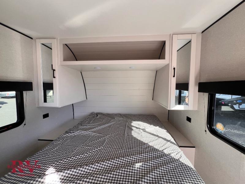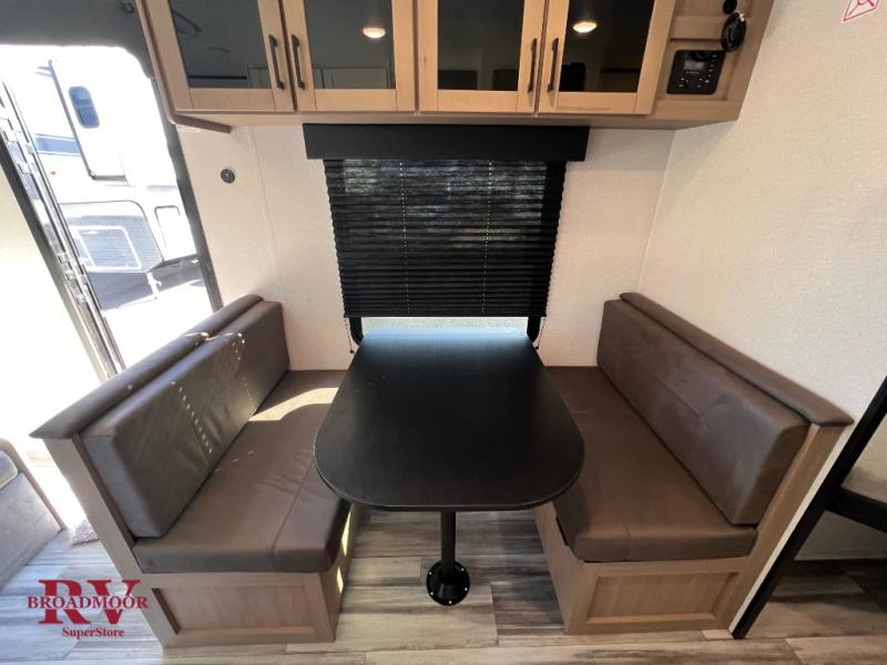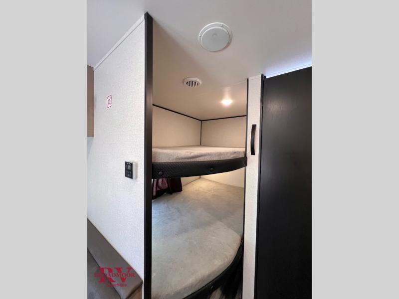 You can comfortably sleep up to eight people in this trailer thanks to the double-size bunks, the RV queen bed in the front bedroom, plus the booth dinette and jack-knife sofa in the main living area! The chef of your crew will have a three burner cooktop and microwave oven to prepare meals, and everyone can store their favorite drinks in the 8 cu. ft. 12V refrigerator. The bathroom includes a shower and a toilet, with the sink just outside of this room so others can brush their teeth if one is taking a shower before bed. The outside storage will let you bring along fishing poles and the 16' power awning with LED lights will create a nice place to gather in the evenings!