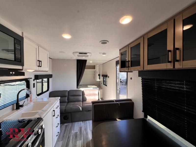 The Jayco Jay Flight SLX travel trailer is quite easy to own because it is lightweight for an easier towing experience. Built on a fully integrated A-frame with galvanized-steel, impact-resistant wheel wells, the Jay Flight SLX has quality at its very foundation. That quality continues on to the electric self-adjusting brakes, easy-lube hubs, Magnum Truss roof system, and LP quick connect. Some of what the mandatory Customer Value Package includes is backup camera prep, Keyed-Alike entry and baggage doors, and an on-demand tankless water heater