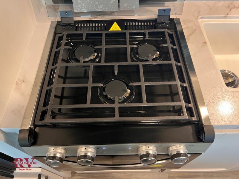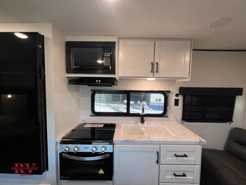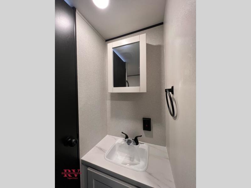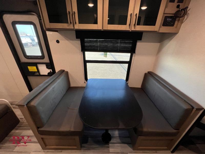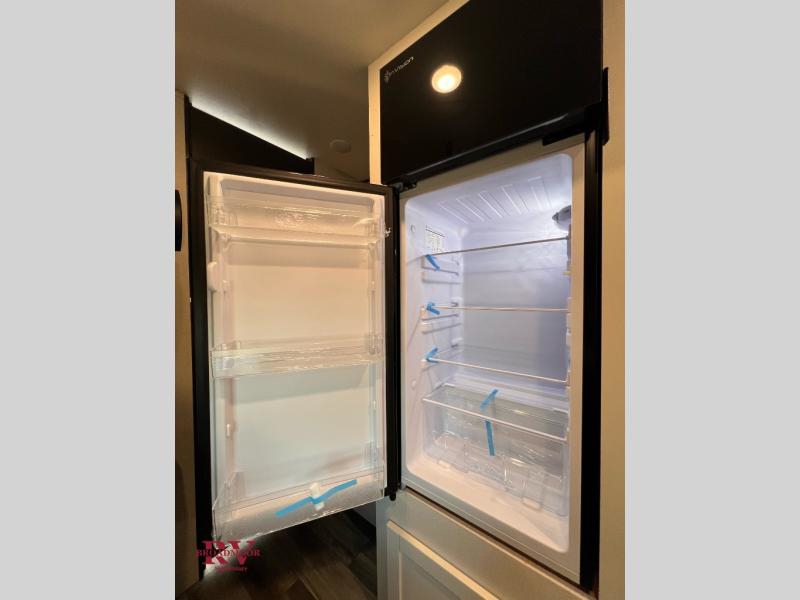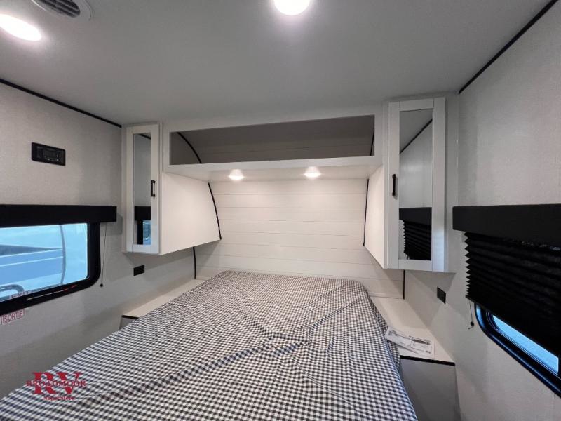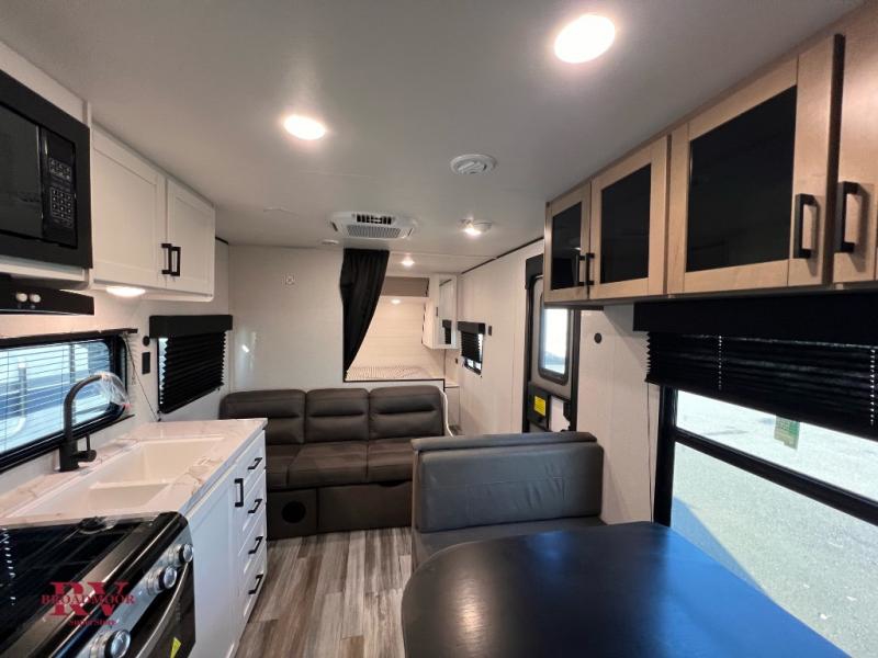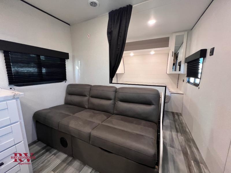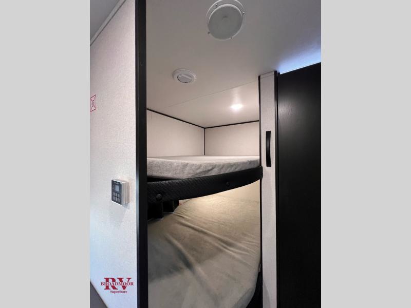 You can comfortably sleep up to eight people in this trailer thanks to the double-size bunks, the RV queen bed in the front bedroom, plus the booth dinette and jack-knife sofa in the main living area! The chef of your crew will have a three burner cooktop and microwave oven to prepare meals, and everyone can store their favorite drinks in the 8 cu. ft. 12V refrigerator. The bathroom includes a shower and a toilet, with the sink just outside of this room so others can brush their teeth if one is taking a shower before bed. The outside storage will let you bring along fishing poles and the 16' power awning with LED lights will create a nice place to gather in the evenings!