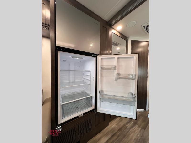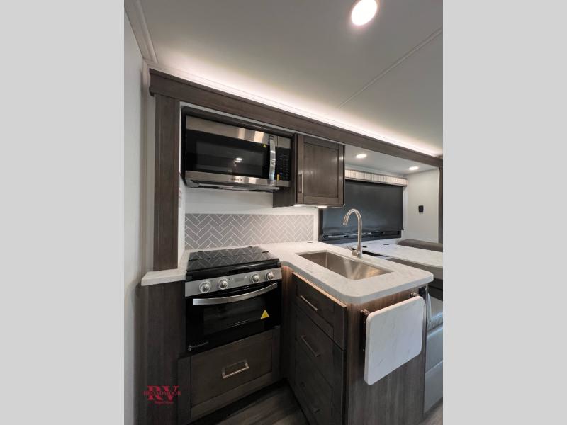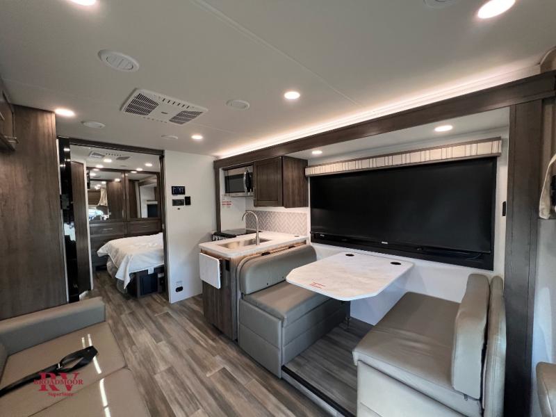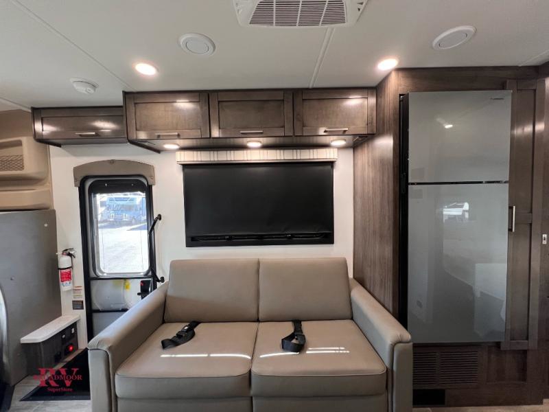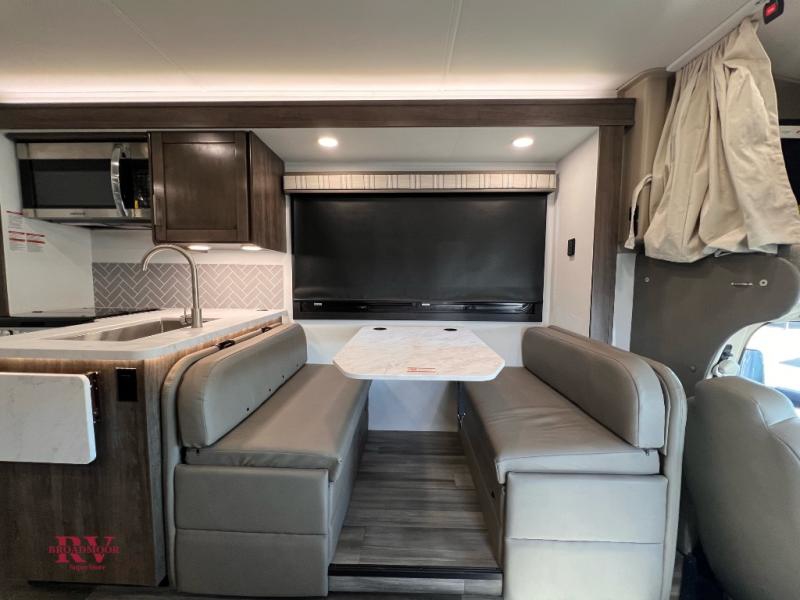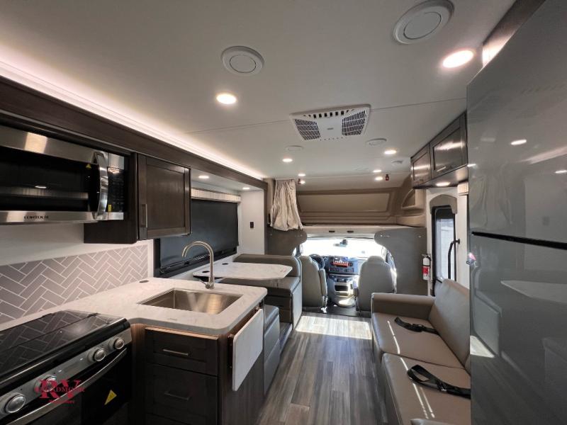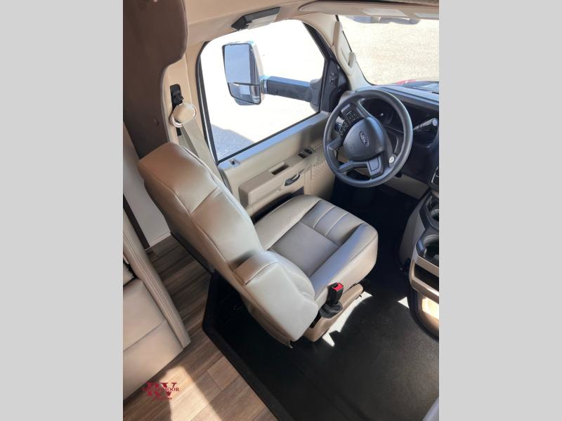 Trips across state lines just got sweeter in this motorhome for five to six. The swivel captain's seats can become a part of the living area once you park, and your guests can get comfortable on the 42" x 70" booth dinette or 68" jackknife sofa. There is a cab-over bunk the kids will love, and the LED HD Smart TV will allow you to enjoy movies. The chef of your group can prepare meals on the Furrion all-in-one cooktop and oven, and leftovers can go in the 10 cu. ft. 12V refrigerator. You will feel right at home in the bedroom suite with its king bed slide out, large wardrobe, and access to the rear corner bathroom. Get started on your getaway today in this cozy Class C motorhome!