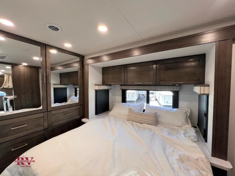 Optional Equipment Installed On This Unit: Spring Paint Package, Customer Value Package, Bedroom TV, Dual 13.5K ACs, Folding Windshield Sun Shade