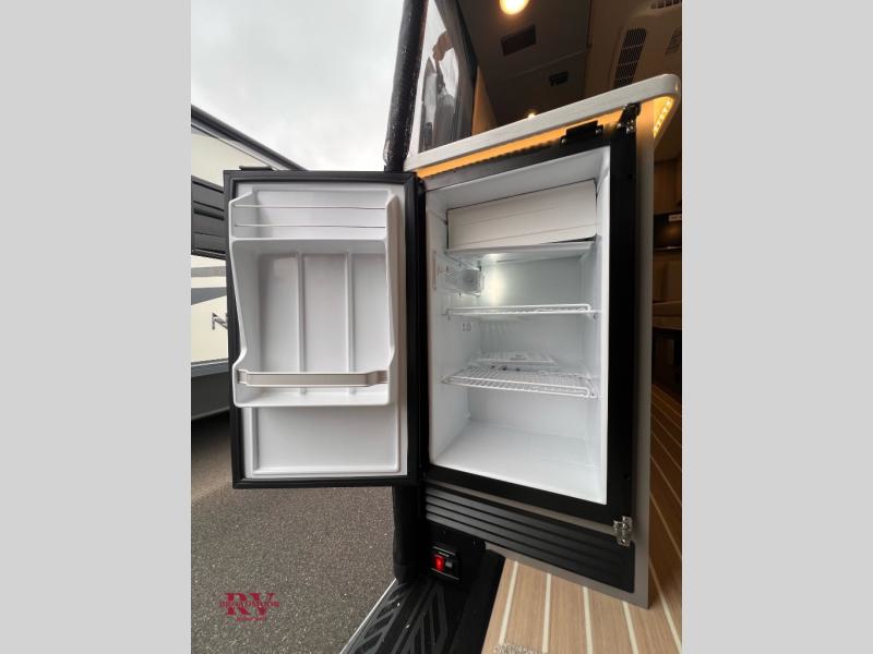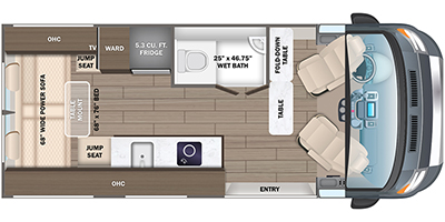 This coach will be perfect if you enjoy traveling with a friend or just need your own space at night. There are two 28" x 76" twin beds with overhead storage for your things, and the aisle will make it easier to get to the rear wet bath! The twin beds can also convert to one 61" x 76" bed if you'd rather have one big bed! A portable induction cooktop and microwave oven will let you make meals each day, and the 3.1 cu. ft. refrigerator will keep your cold items fresh. Up front, the swivel seats can be turned around when you park, and there is a flip-up seat desk behind the driver's seat for added convenience!
