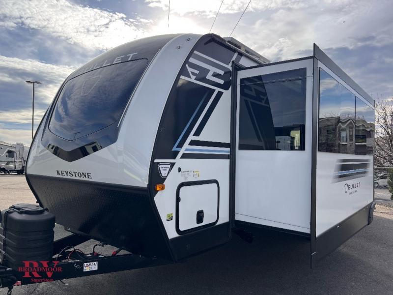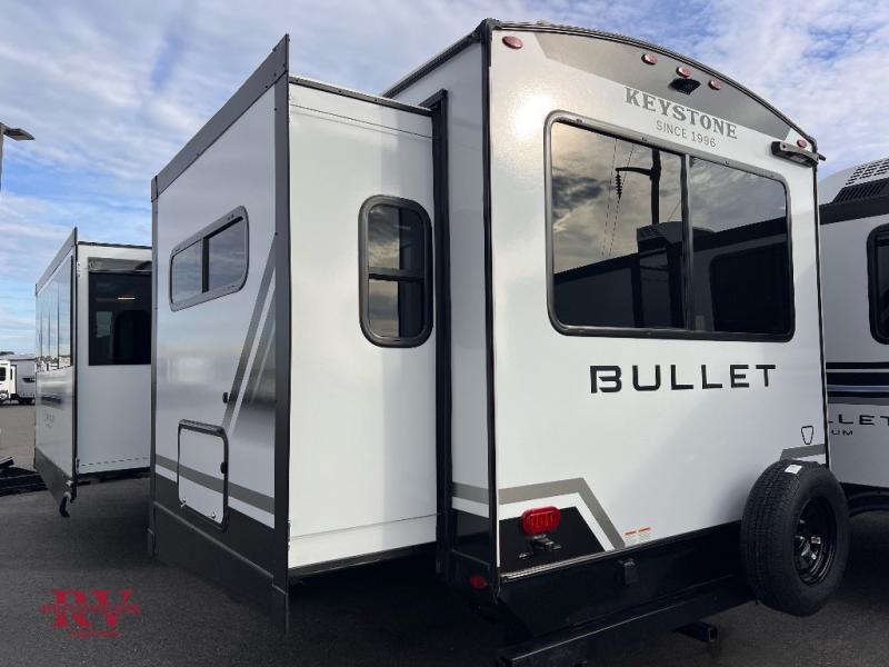With any Keystone Bullet travel trailer you can experience lightweight camping with style! The interior design and functionality will impress you, along with the durable construction materials. Each is built with Hyper Deck RV flooring that is stronger, lighter and more resilient than traditional wood laminated flooring. The Girard tankless water heater is a feature you won't want to camp without, and the Blade high-performance air flow system will help keep you comfortable all summer long. It will be so easy to enjoy life at the campground since each model includes residential durable Beauflor vinyl flooring, deluxe night shades, solid surface seamless kitchen countertops, and many more comforts!