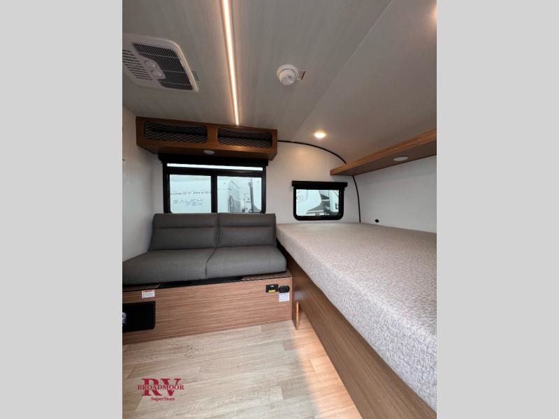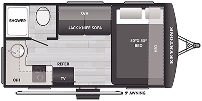 This travel trailer is ideal for weekend getaways or extended road trips! The full bathroom provides all the amenities you need, while the spacious 54" X 74" bed ensures a restful night's sleep. Moreover, overhead cabinets offer ample storage for your belongings, and the TV provides entertainment for downtime. The refrigerator keeps your favorite snacks and drinks fresh, and additional overhead cabinets offer extra storage. In addition, the 9' awning provides shade and protection from the elements, creating a comfortable outdoor living space.