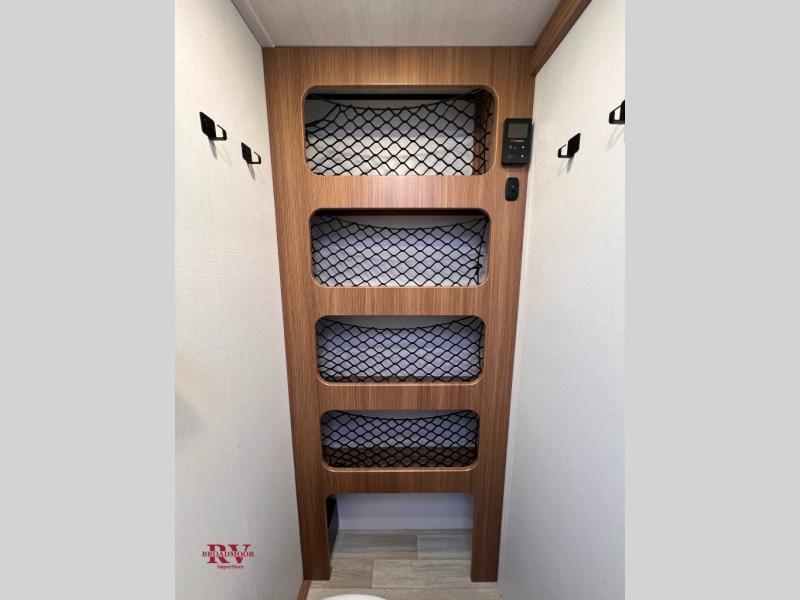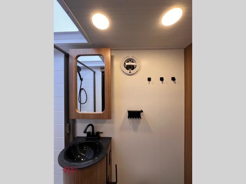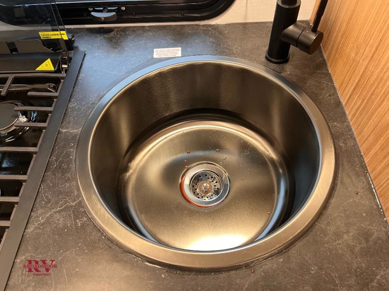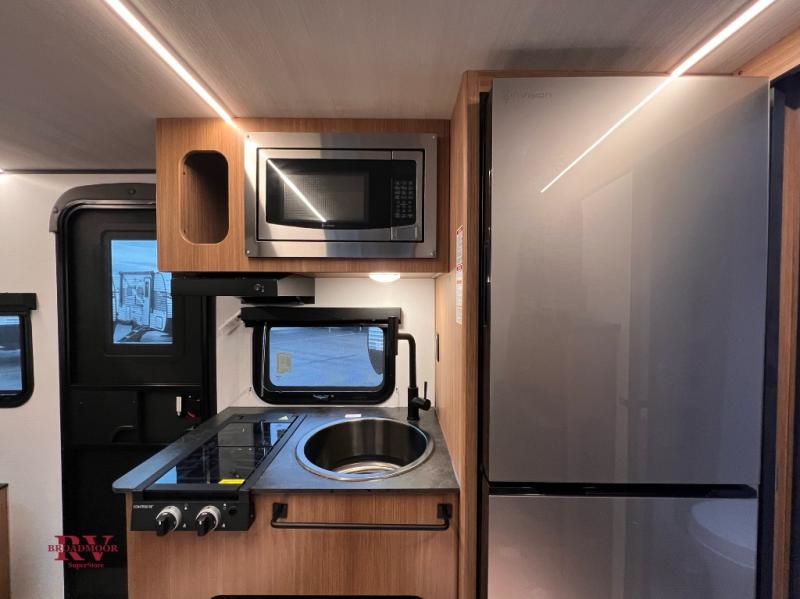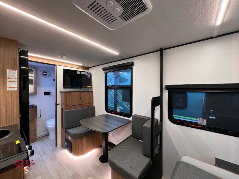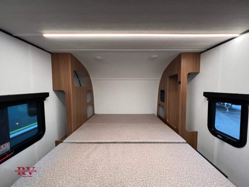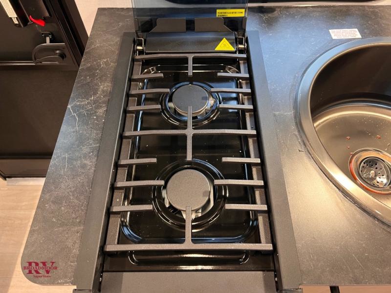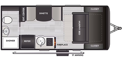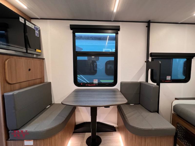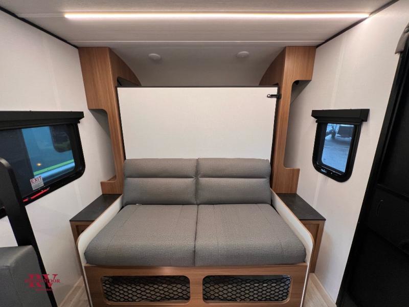 This single axle trailer is both cozy and versatile since there is a fold down sofa/Murphy bed up front! Now you can easily convert seating space into sleeping space, plus there are dual bedside closets to keep your things tidy. A two burner cooktop and air fryer/convection microwave will let you cook meals each day, and a booth dinette provides a place to dine together. You can also choose to add the optional flip-up bunk above the dinette if you need more sleeping space. And don't overlook the full rear bath that will allow you to freshen up without having to leave your camper!