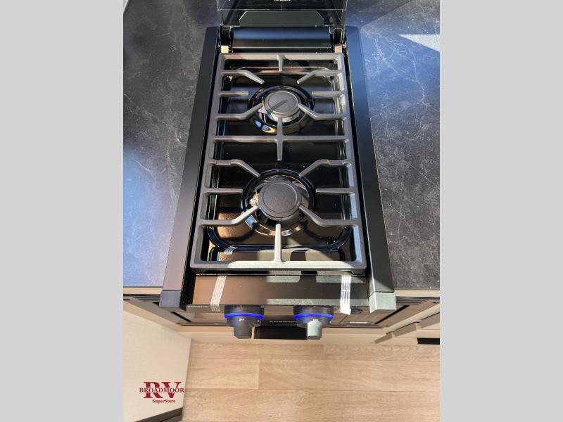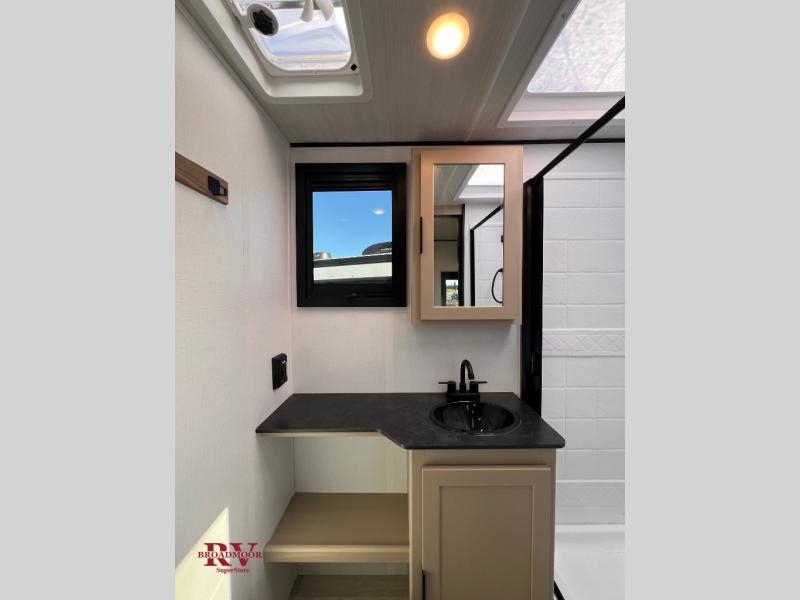 You and your spouse will love this travel trailer’s plush dream day bed with a comfortable bamboo mattress. Ample storage is provided by the wardrobes on each side of the bed, keeping your favorite outfits within easy reach. The booth dinette and theater seating provide perfect spots to enjoy meals, play games, or relax with loved ones. Plus, the layout is designed to maximize comfort and conversation. Whip up meals and snacks with ease and enjoy the convenience of having everything you need in one place since the kitchen is equipped with essentials, including a refrigerator, microwave, and pull-out pantry. Also, the full bathroom provides a convenient private space to get ready for the day.