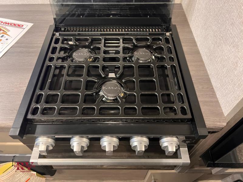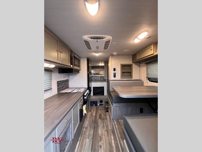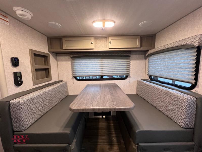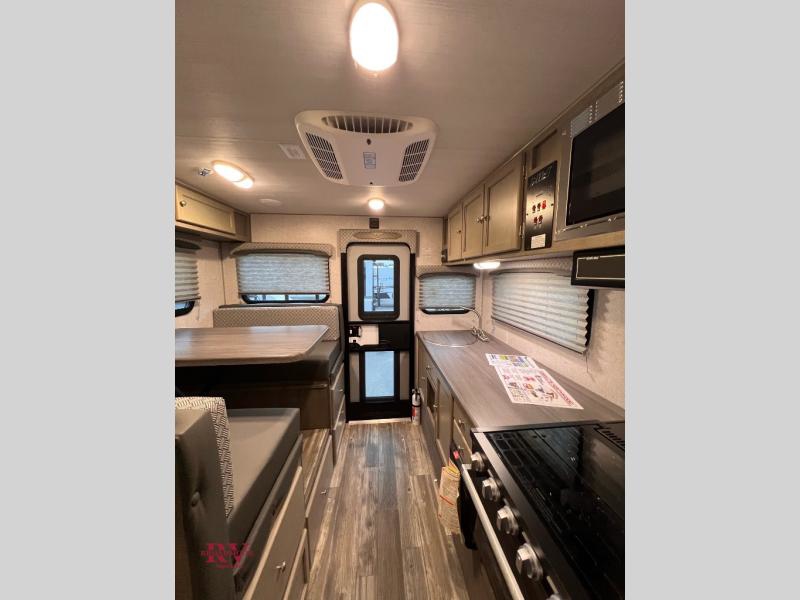 Make your weekend excursions easier than ever in this cozy truck camper for three to four. Since there is a 58" x 80" queen bed up front, you won't have to sleep on the floor, and your guests can sleep on the booth dinette that converts to a 40" x 72" sleeping area. Get cleaned up each day in the convenient wet bath that includes a medicine cabinet and an exhaust fan to keep everything fresh. There is a three burner cooktop and residential-style microwave with an air fryer to prepare meals each day, plus an 8 cu. ft. 12V refrigerator for perishables. This model also includes three wardrobes around the bed for more storage place plus a TV location if you want to add the optional 24" 12V LED TV!