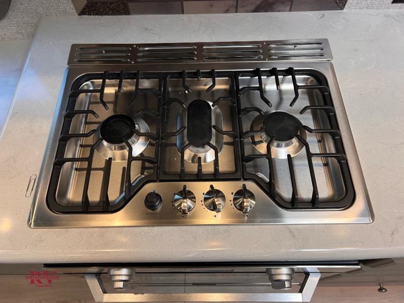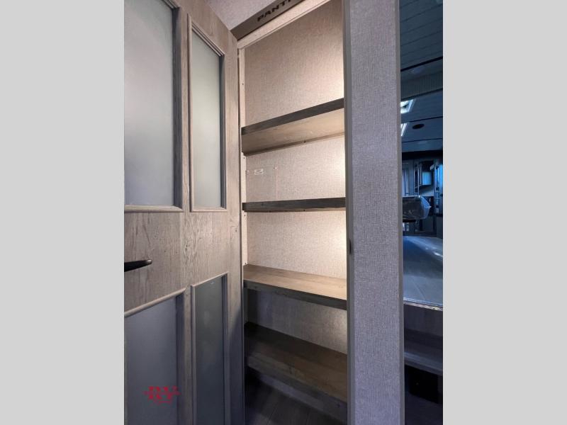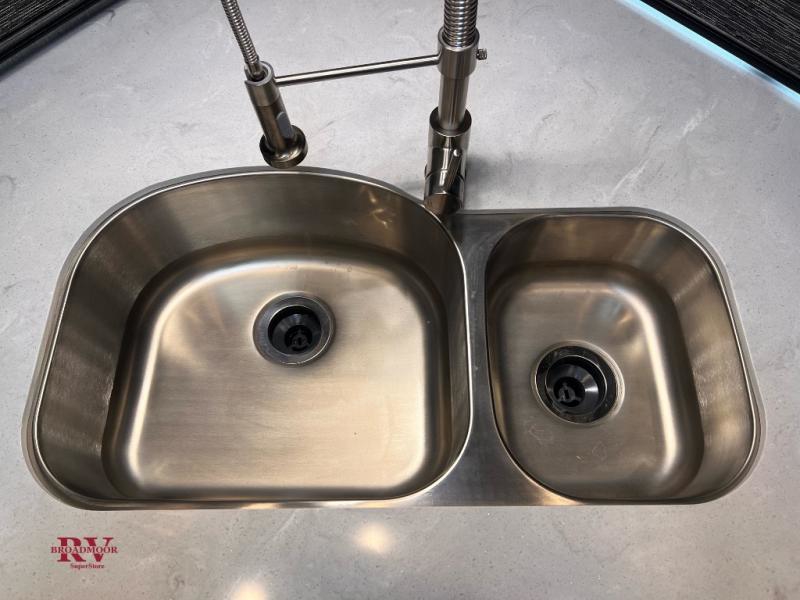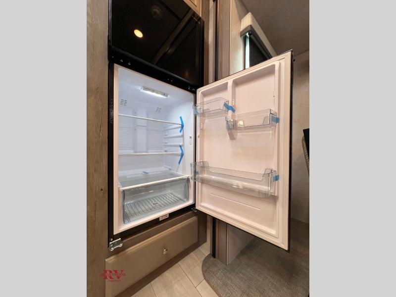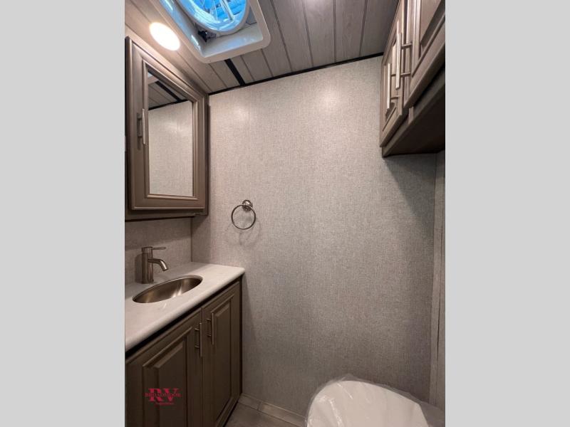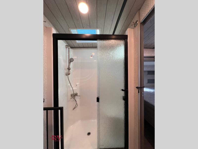 Designed for campers who love to cook, relax, and truly unwind, the 295RK delivers residential comfort in a smart, travel-ready layout. At the front, a spacious king bed creates a true retreat after a full day outdoors, giving you room to stretch out without compromise. In the rear, the dedicated rear kitchen is a standout feature, offering expanded counterspace, abundant cabinetry, and a natural separation from the living area so everything feels open and organized. The main living space invites you to kick back in plush theater seating, perfectly positioned for movie nights or simply enjoying the view through the large windows. Just steps away, the bathroom features a generous shower with a built-in seat, adding comfort and convenience whether you’re starting your morning or winding down for the evening. Outside, the impressive 16' power awning extends your living space even further, creating a shaded area ideal for relaxing, grilling, or gathering with friends at the campsite.
