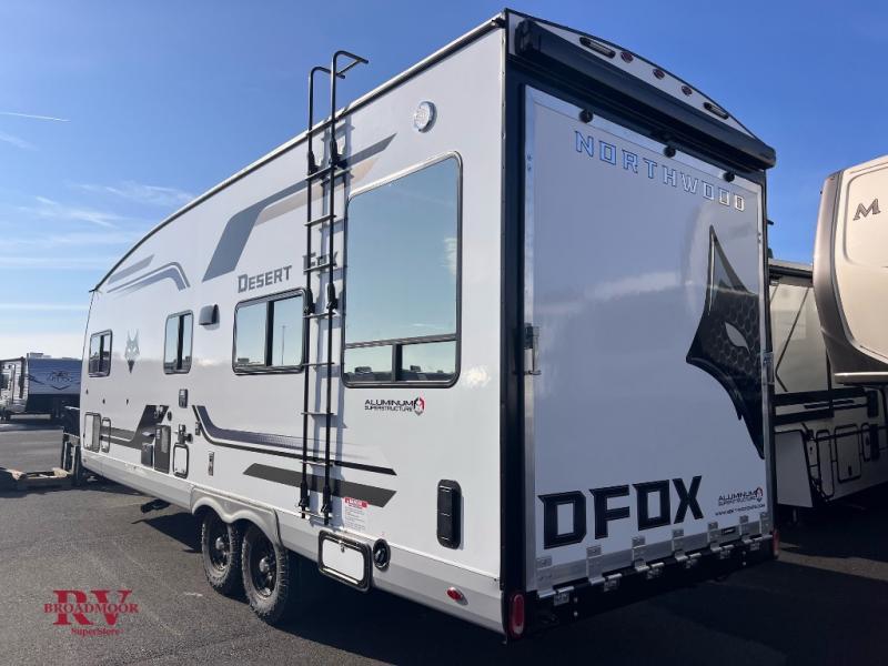 The Northwood Desert Fox toy hauler is a legacy of quality that is built to last through years of use and all types of weather! There is a Northwood built Ironhorse chassis to provide a strong foundation, and there are shocks on all four 16" aluminum wheels. Stabilizer jacks keep your trailer firmly in place while you are set up at camp, and there is an exterior shower to help you rinse off the mud from your four-wheelers. A motion-sensor exterior work light will scare away intruders, and the LED outside speakers will provide a good time. You can control everything from the interior command center, and the SolX 4 - 400 Watt solar package is an excellent power provider.