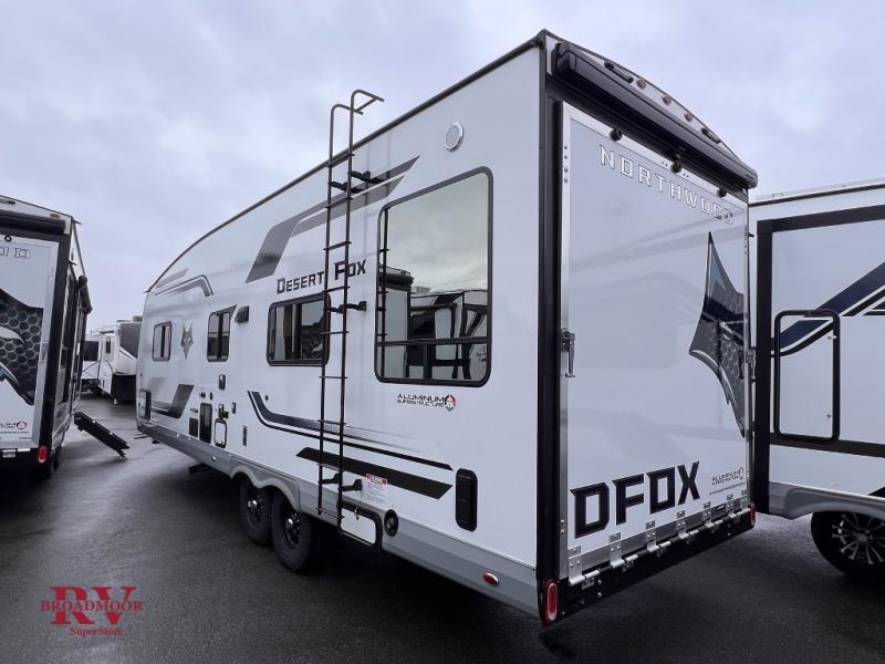 The Northwood Desert Fox toy hauler is a legacy of quality that is built to last through years of use and all types of weather! There is Northwood built Ironhorse chassis to provide a strong foundation, and there are shocks on all four 16" aluminum wheels. Stabilizer jacks keep your trailer firmly in place while you are set up at camp, and there is an exterior shower to help you rinse off the mud from your four-wheelers. A motion-sensor exterior work light will scare away intruders, and the LED outside speakers will provide a good time. You can control everything from the interior command center, and the SolX 4 - 400 Watt solar package is an excellent power provider.