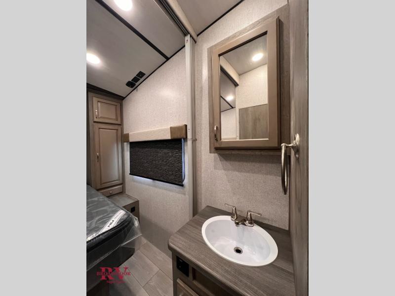 Don't wait one more minute to snatch up this Desert Fox toy hauler! This unit has a great layout with a walk-around queen-size bed up front in a semi-private bedroom. You can section off this bedroom space by drawing the privacy curtain. If you're someone who loves riding your power toys all throughout the woods, you're probably also someone who enjoys living in the fresh air which is why the 14' awning will be used quite often. The wide body allows you to bring in toys through the 90" x 90" fold-down cargo door, and you can add an optional ramp door patio kit if you'd like.