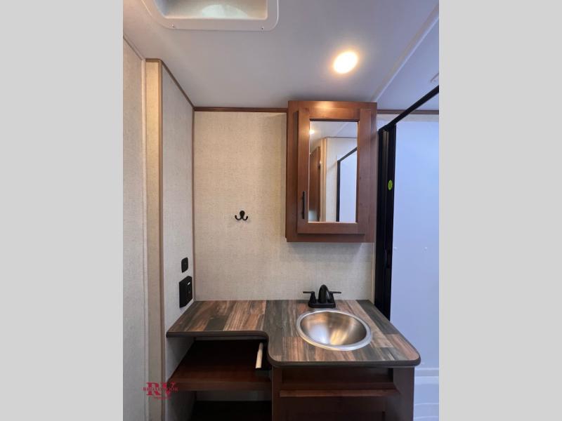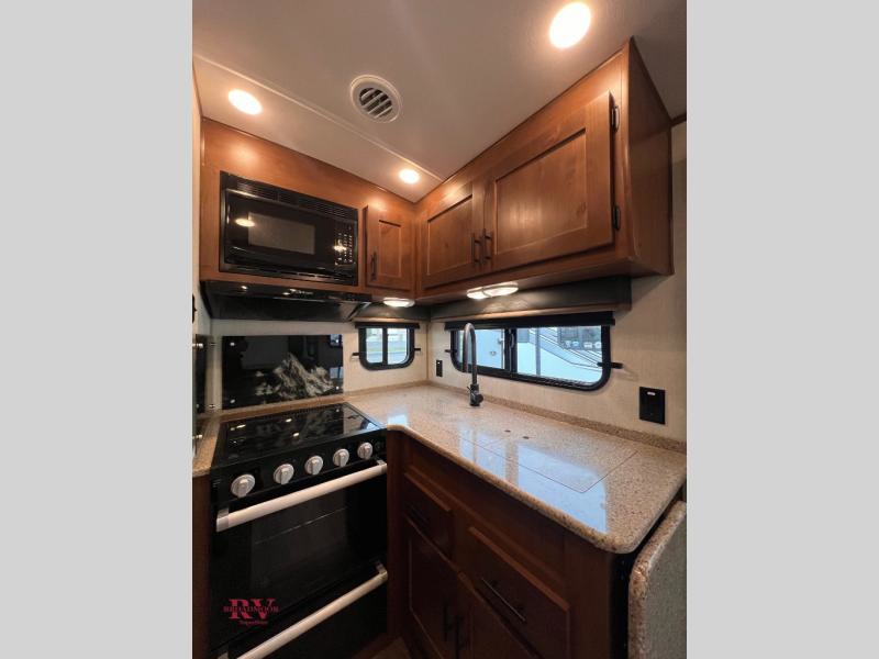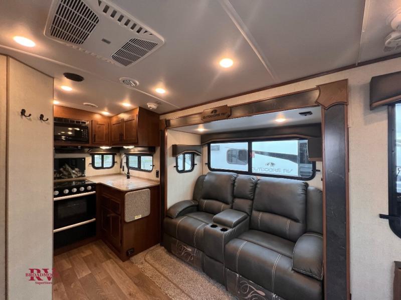 Each Creek Side Mountain Series travel trailer by Outdoors RV is designed for mountain tough four seasons camping for all your adventures. You'll find mountain extreme thermal pane windows, triple layered four seasons roof insulation, and a unique heated, insulated holding tank design. The compact design is compatible for light duty tow vehicles and smaller campsites, so you may not even need to purchase a new vehicle to start camping. Each model includes LG solid surface countertops, ultra leather furniture, and XL panoramic slide out windows for great outdoor views. These travel trailers also feature a mountain comfort premium mattress, 12V USB ports on either side of the bed, and drawers under the bed for convenient storage.