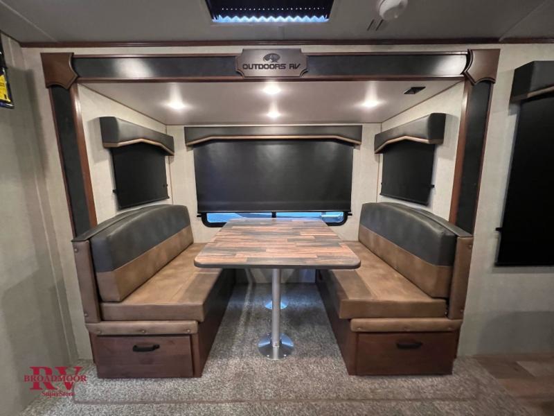 Each Creek Side Mountain Series travel trailer by Outdoors RV is designed for mountain tough four seasons camping for all your adventures. You'll find mountain extreme thermal pane windows, triple layered four seasons roof insulation, and a unique heated, insulated holding tank design. The compact design is compatible for light duty tow vehicles and smaller campsites, so you may not even need to purchase a new vehicle to start camping. Each model includes LG solid surface countertops, ultra leather furniture, and XL panoramic slide out windows for great outdoor views. These travel trailers also feature a mountain comfort premium mattress, 12V USB ports on either side of the bed, and drawers under the bed for convenient storage.