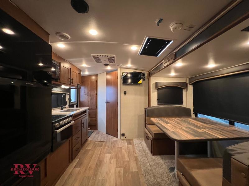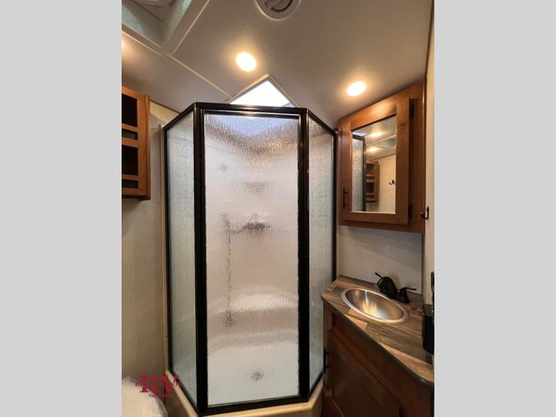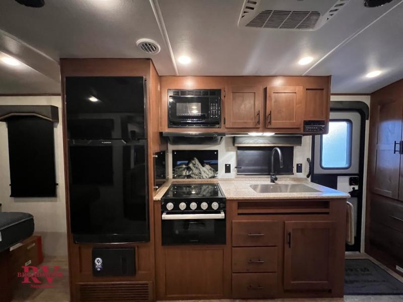 Camping in the mountains has never been more relaxing than in this single slide out travel trailer. You will have a full bath to clean up in each morning, and a three burner cooktop in the kitchen to prepare breakfast. The mountain dinette slide will be perfect for dining together, and if you have any overnight guests, they can sleep here. You will have the queen bed all to yourselves up front with dual bedroom wardrobes to keep your clothes tidy. This model also includes a 17' awning so you can visit outdoors protected from the elements.