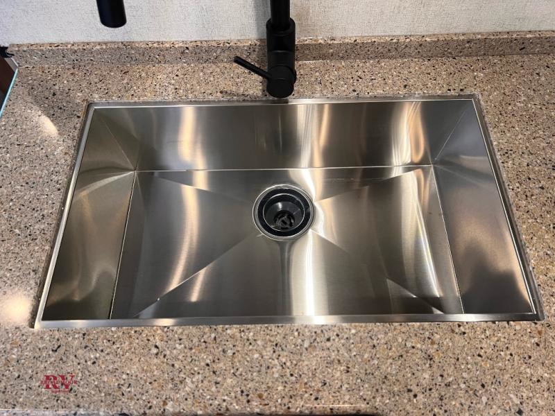 With any Timber Ridge Mountain Series travel trailer by Outdoors RV, you will enjoy climate designed four seasons camping thanks to the thermal pane windows, and XL furnace, plus unique heated and insulated holding tank design. The custom built chassis and rugged integrated A-frame are built for strength and durability, along with the rugged 2" bonded aluminum frame walls. Each model includes LG solid surface countertops, granite designed backsplash, vaulted radius ceilings, and a mountain comfort premium mattress for all-around comfort. You will also love the XL panoramic slide out windows and the dual pane living room skylight with a shade to let natural light in!