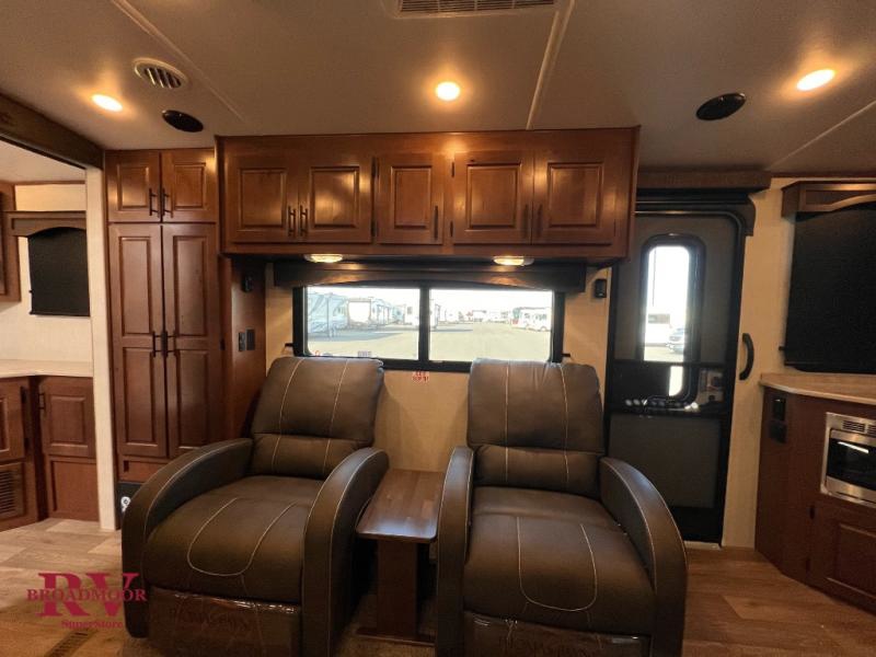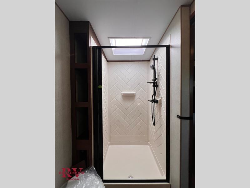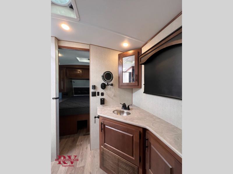 Pack your bags and escape the city life for weekend camping trips in this dual entry travel trailer. When you arrive at the campsite, take a hike to stretch your legs, then come back to prepare lunch on the three burner cooktop. You'll find plenty of counter space in the kitchen, plus a 10 cu. ft. refrigerator for cold drinks and perishables. The dual lounge chairs will have you feeling right at home, or you can choose the optional sofa with built-in recliners, or the optional sleeper sofa if you need more sleeping space. This model includes a walk-through bath that is both spacious and convenient since it leads to to the front master bedroom. You can't beat a queen bed, dual bedroom wardrobes, and your own exterior entry door!