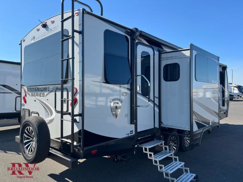 Optional Equipment Installed On This Unit: Titanium Series, Mtn. Storage System, Living Room Fireplace, 12V Heat Pad, 50AMP Service, Off-Grid Battery Pack, Deluxe Power Vent Fans