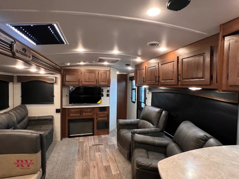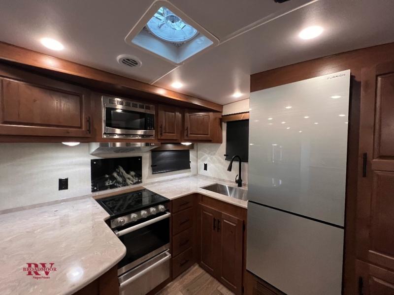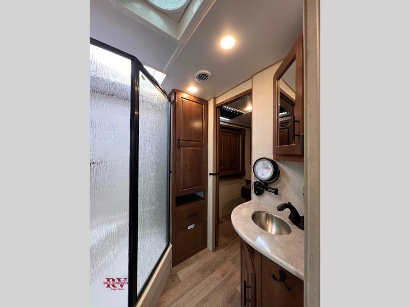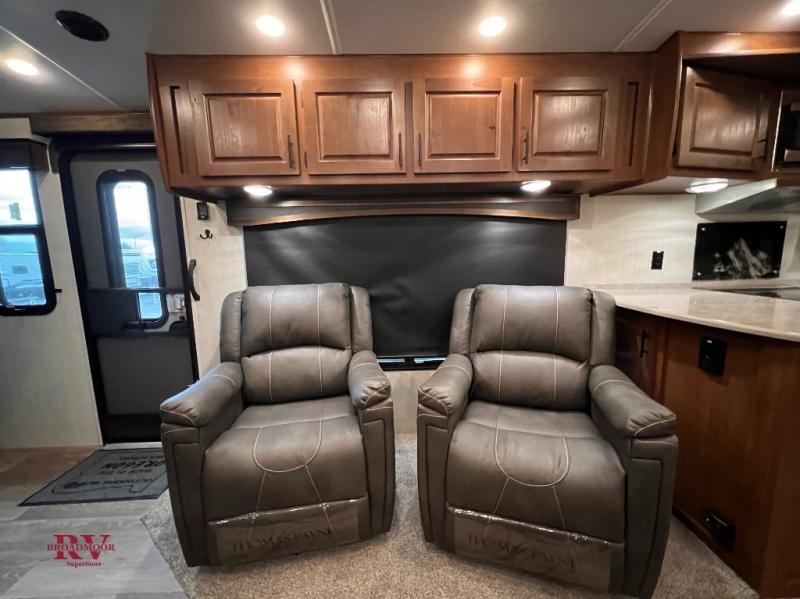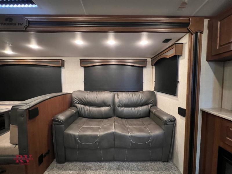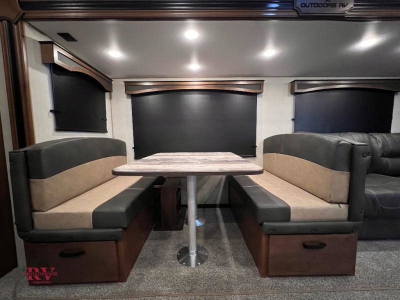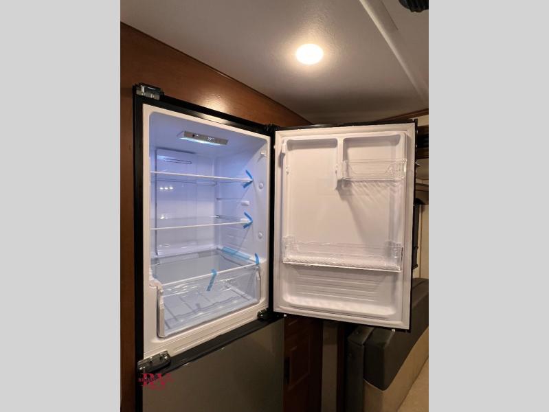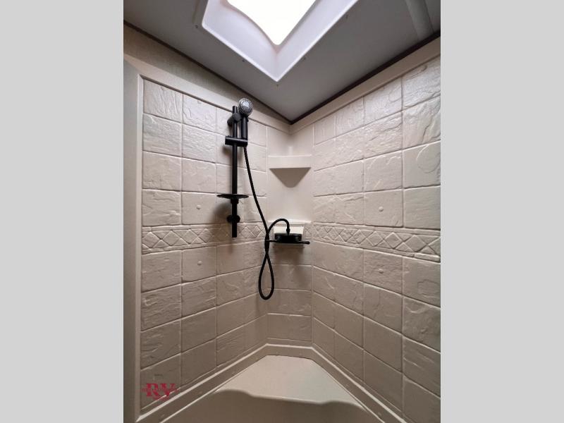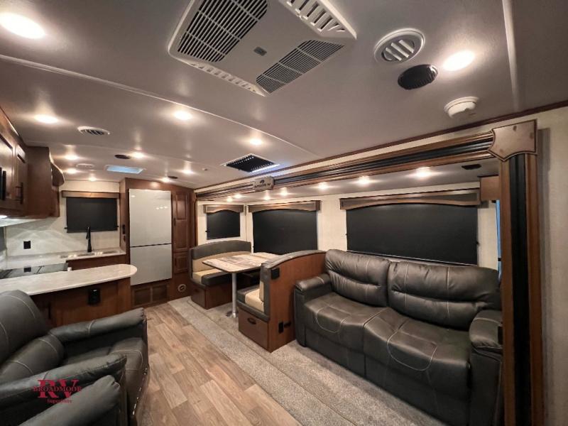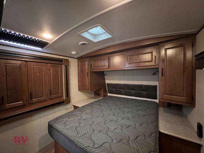 It's time to upgrade your travel trailer with a unit with more space and comfort, and this is the one! The rear kitchen includes a pantry next to the refrigerator so you can easily grab your ingredients for home-cooked meals, and the skylight over the dinette will let natural light in as the kids play a game. There are dual lounge recliners and a sleeper sofa in great view of the entertainment center, so don't miss out on your favorite shows! You're going to love the front master bedroom that includes added room at the end of the bed so you can get dressed each morning with plenty of space, and the dual entry bath with a skylight is an added feature you won't want to camp without!