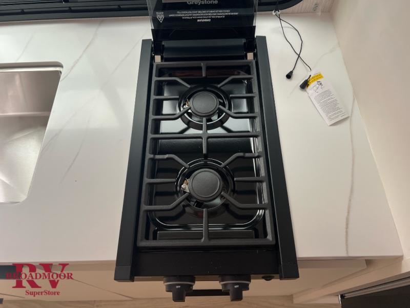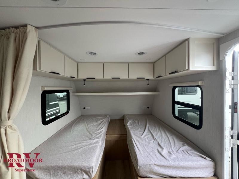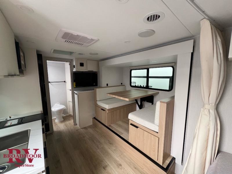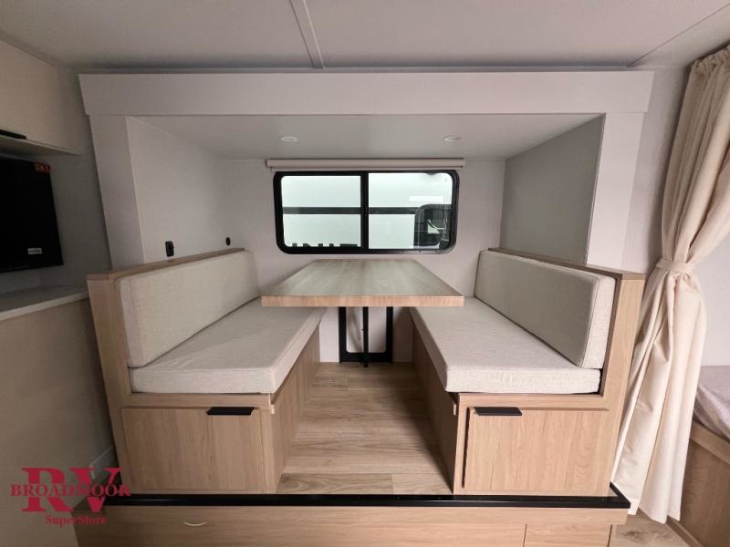 Come see just how accommodating this travel trailer can be! The two 32" x 74" twin beds up front have a nightstand in between them and a divider curtain to draw, plus they can convert into one 74" x 82" king-size bed. The 44" x 72" booth dinette slide can also convert into an extra sleeping space when you're not using it for meal time or playing games. Everyone can get squeaky clean in the full rear bathroom, and the wardrobe is a convenient place to store your linens and extra clothes. Grab a snack from the kitchen pantry or pop a bag of popcorn in the convection microwave then watch a movie on the Smart TV or head outdoors and relax underneath the power awning!