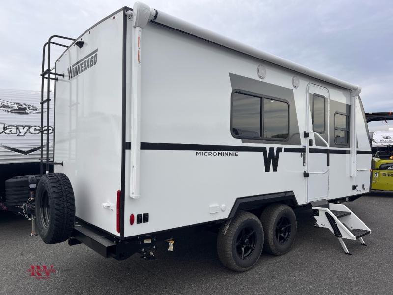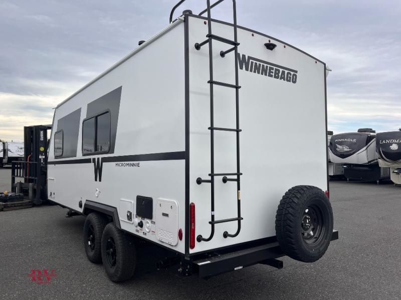 Start out on your boundless journey in one of these Winnebago Micro Minnie travel trailers! Towing is made simple with the 7' width to keep your Micro Minnie in your rear-view mirror, and even though they are compact in size, they aren't lacking in features. Each one is built with an NXG frame and fiberglass sidewalls with Azdel Onboard composite panels for added durability, plus dual Dexter TORFLEX torsion axles for smooth towing. There are also Goodyear Wrangle tires, power stabilizer jacks, a fully walkable roof and many more exterior conveniences. A 200-watt solar panel and Winnebago all-in-one control panel will provide off-grid capabilities and let you stay in control of your trailer's functions. Inside, you'll enjoy the flush mount ceiling lights, full-overlay European-style cabinetry, and JBL premium sound interior speakers, plus there is a tankless water heater to ensure your comfort!