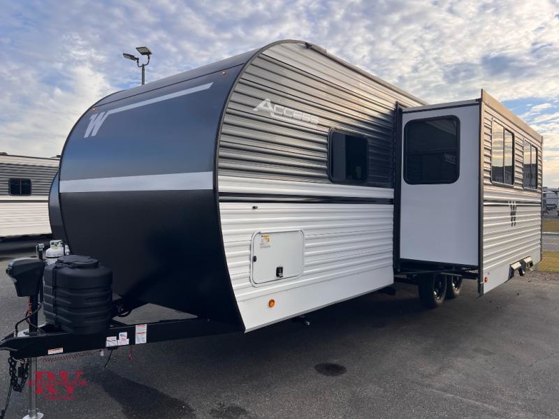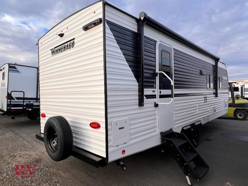 With any Winnebago Access travel trailer you will find thoughtful, clean, and contemporary designs filled with premium features that all have come to expect on any Winnebago towable. There are single and tandem axle models available, each with superior storage, durable construction, and spacious interiors. Each model features an NXG engineered frame, a one-piece TPO roof membrane, and durable sidewall metal, providing a long-lasting RV. The functional galley kitchen will make time at the campground easier than ever, and the stylish roller shades will provide privacy and shade when you need it!