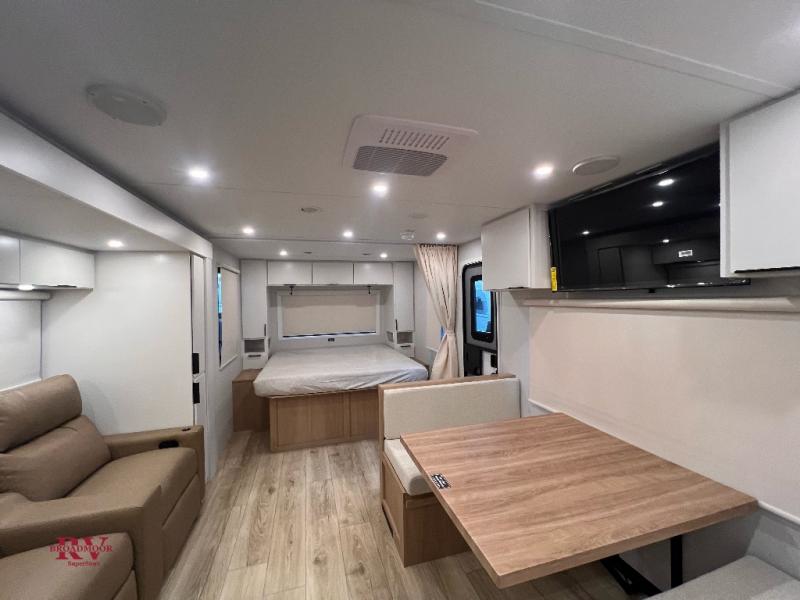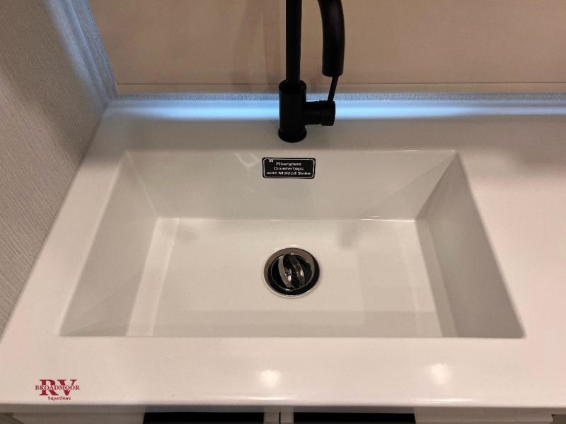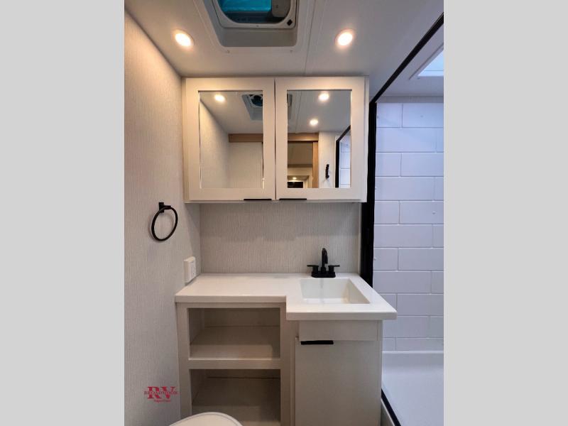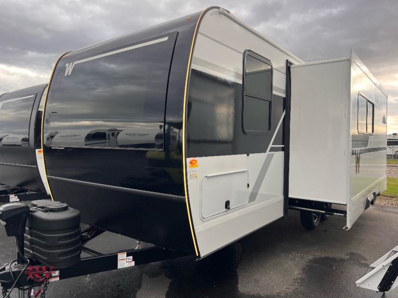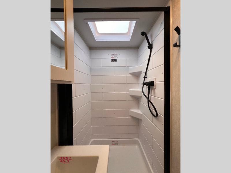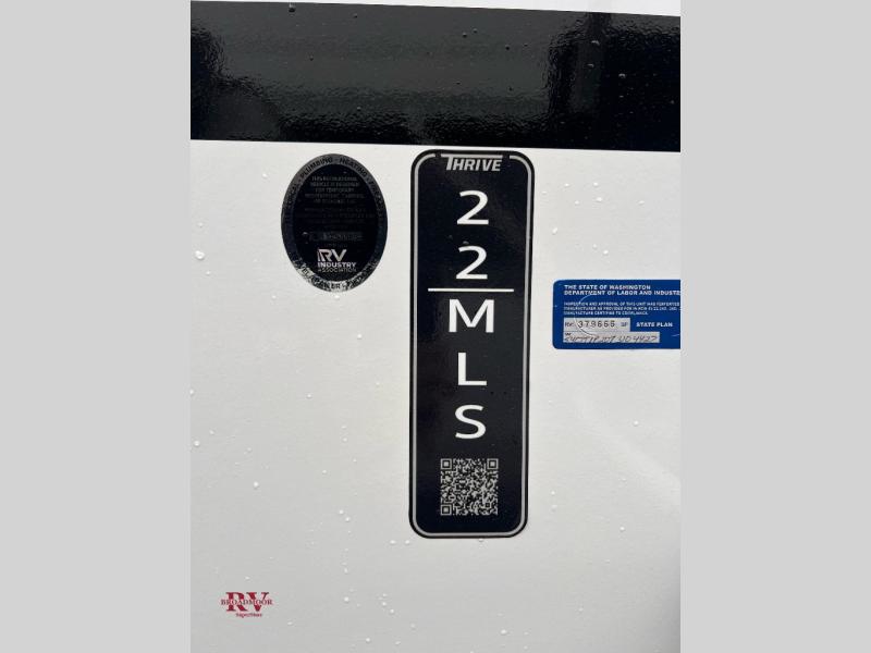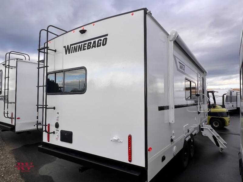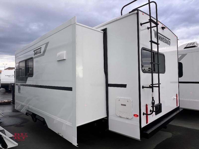 With any Thrive travel trailer by Winnebago, you can camp with functionality, comfort, and convenience! The large front viewing window with strike guard will be the first thing that catches your eye, and the fiberglass sidewalls with Azdel Onboard provide a durable trailer made to last. There is also an exterior ladder, along with front radius profile lights, power stabilizer jacks, and a powered awning with LED lighting to name a few exterior features. You will stay powered up by the 30-amp power cord and 200-watt solar panel, plus there is a tankless water heater for endless hot showers. Inside, you'll love the custom Winnebago furniture, carpetless side outs, molded fiberglass countertops, and residential recessed ceiling lights to keep your space well lit!