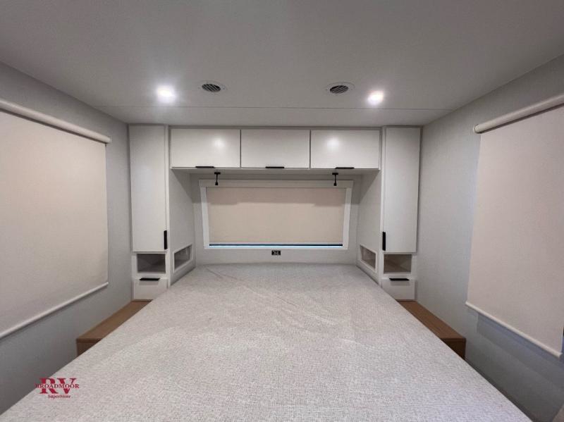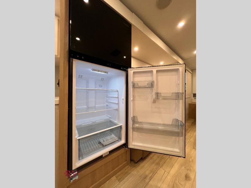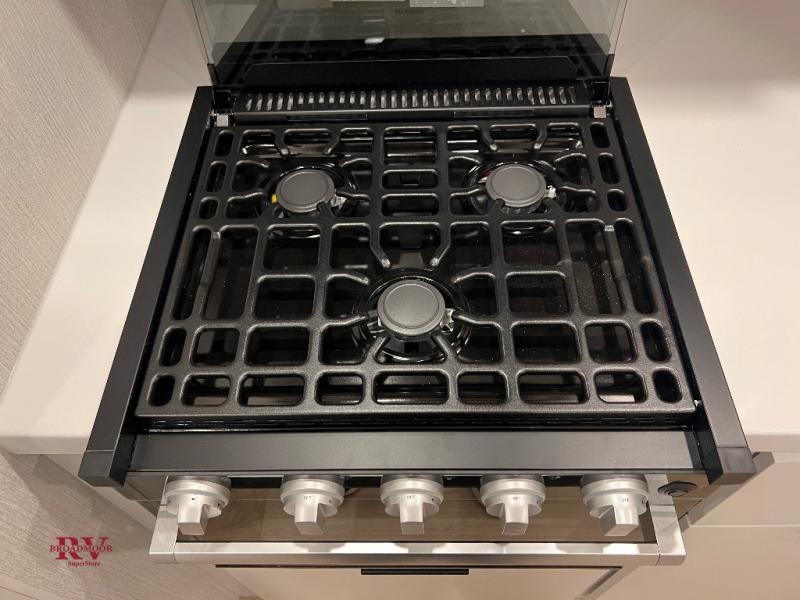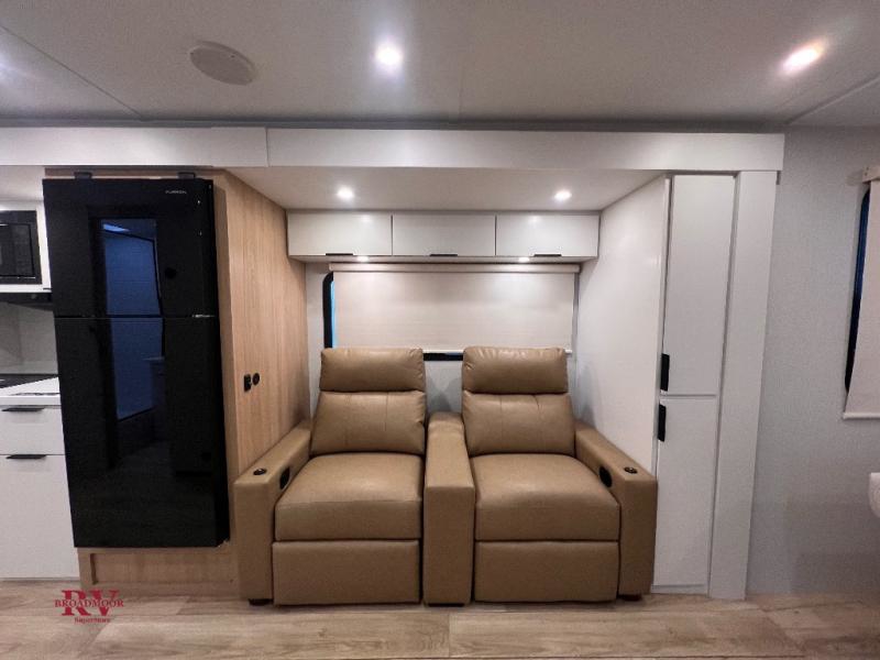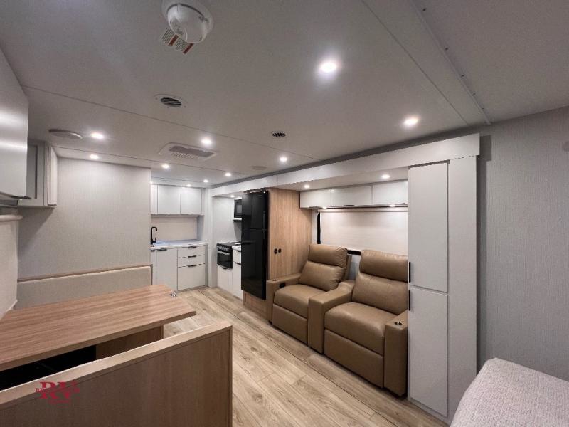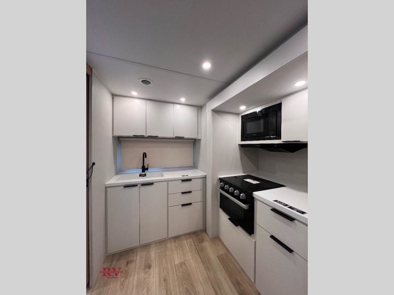 Have everything you need in a compact and well-equipped travel trailer. In the main area there is a large 42" x 82" U-shaped dinette with plenty of room to enjoy a meal, games or sharing stories. Across there is theater seating located in the slide-out that adds extra comfort and seating space. You can enjoy cooking every day from a quick pancake to your favorite casserole in the cooktop with oven and store leftovers in the 10.6 cu. ft. refrigerator. Moving forward you'll find convenient storage options such as the pantry with removable shelves. In the front you'll find a spacious 66" x 80" Olympic queen bed, on each side wardrobes for more storage.
