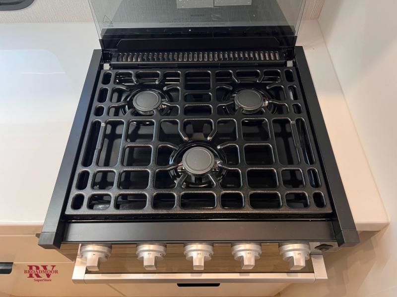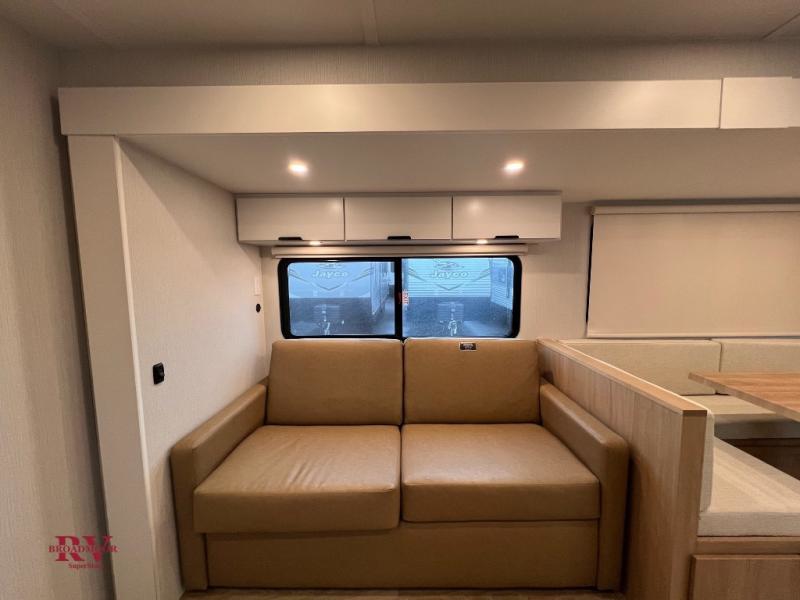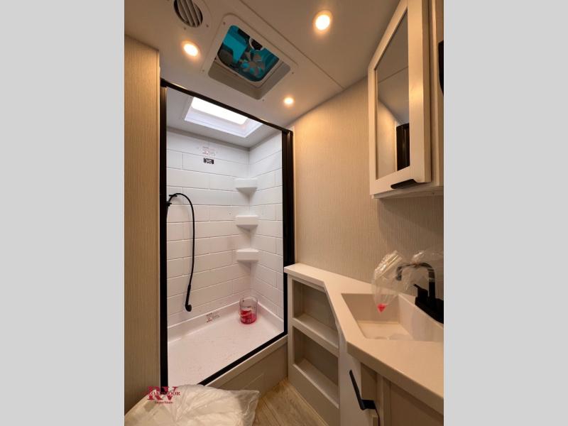 With any Thrive travel trailer by Winnebago, you can camp with functionality, comfort, and convenience! The large front viewing window will be the first thing that catches your eye, and the fiberglass sidewalls with Azdel Onboard provide a durable trailer made to last. There is also an exterior ladder, along with front radius profile lights, power stabilizer jacks, and a powered awning with LED lighting to name a few exterior features. You will stay powered up by the 30-amp power cord and 200-watt solar panel, plus there is a tankless water heater for endless hot showers. Inside, you'll love the custom Winnebago furniture, carpetless side outs, molded fiberglass countertops, and residential recessed ceiling lights to keep your space well lit!