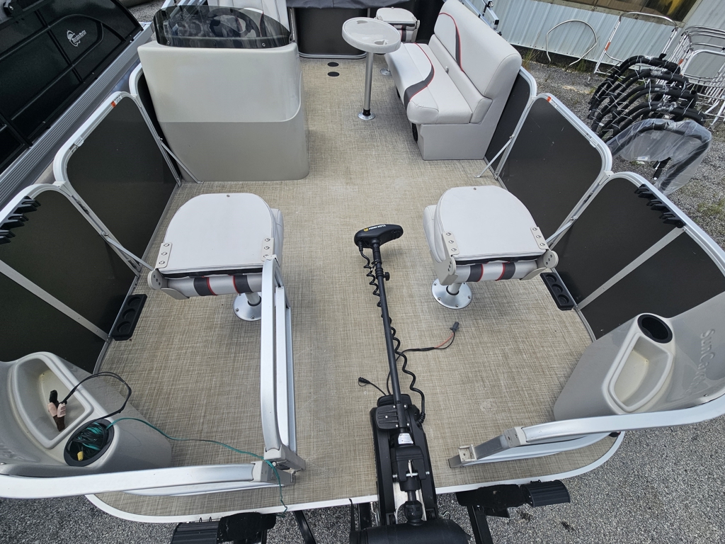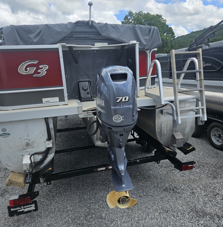 Used 2018 G3 18' Fishing Pontoon powered by Yamaha F70LA. Marine Master PTC Single Axle Pontoon Trailer.