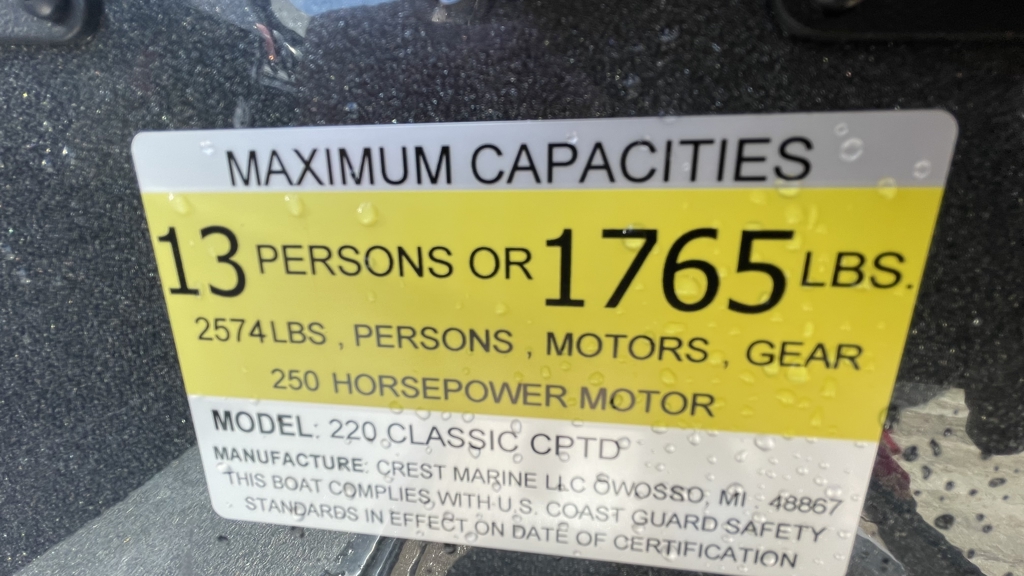 New 2023 Crest Classic Platinum 220SLC CPT DLX powered by 05/23 Mercury 200L 4S Cold Fusion White. Marine Master Tandem Axle Trailer.