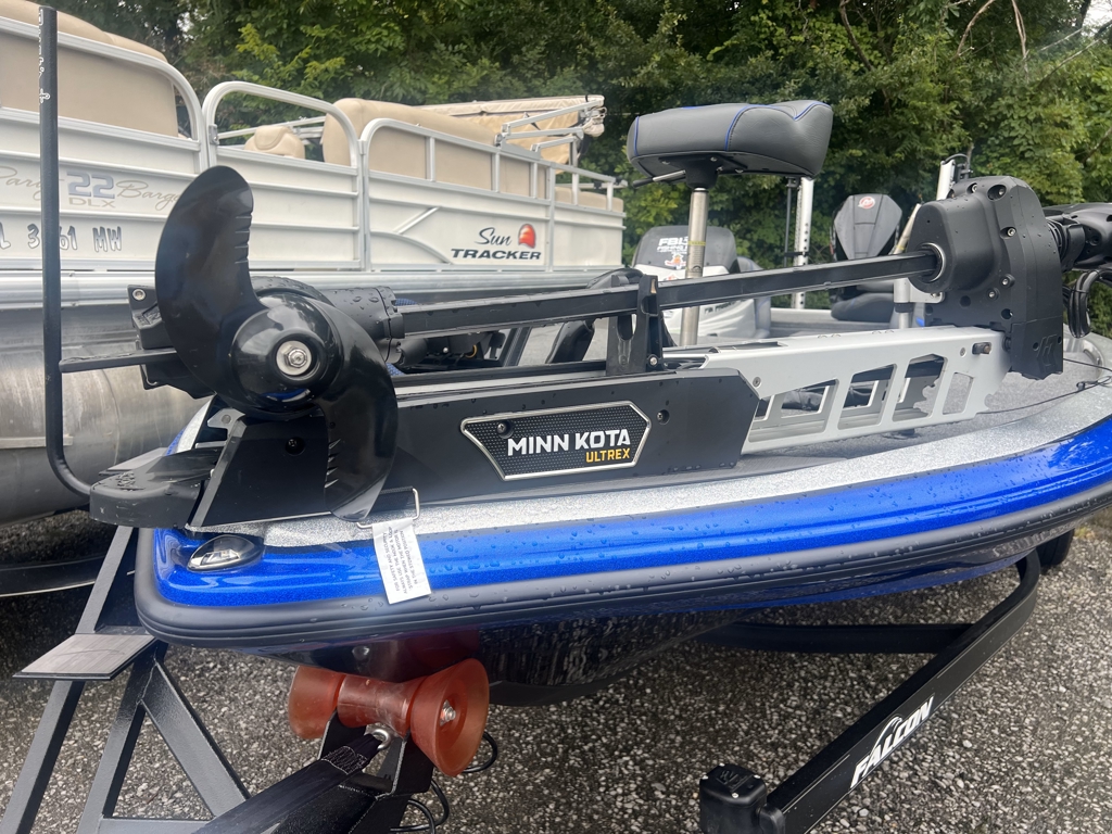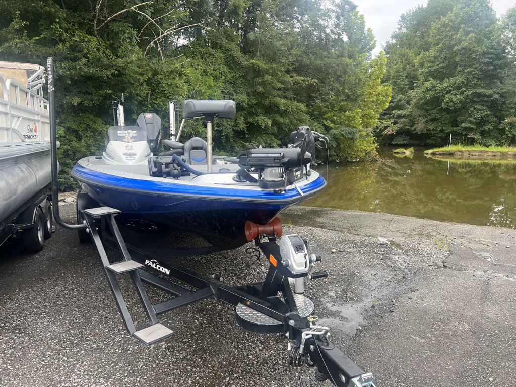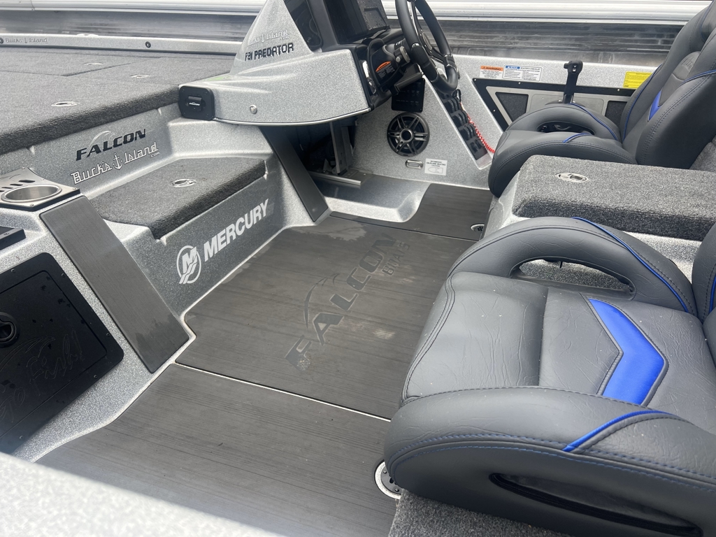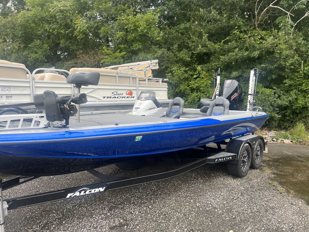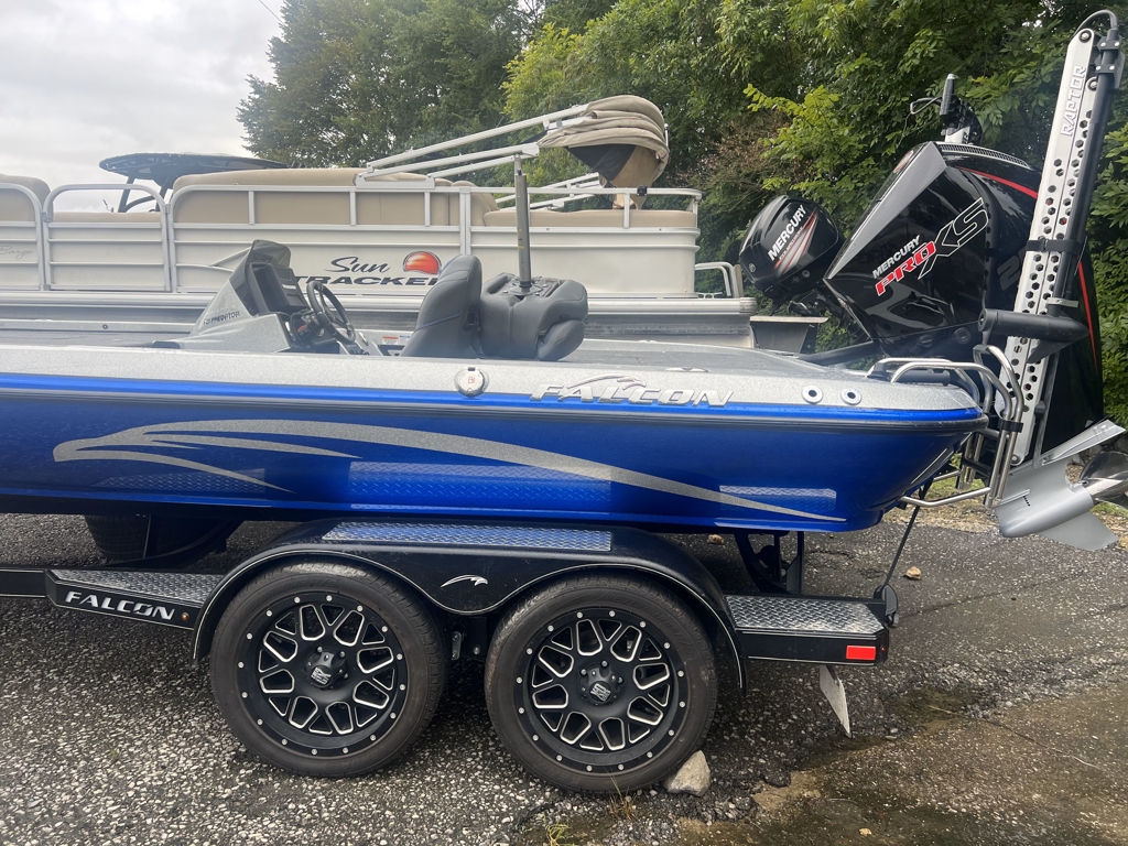 Used 2023 Falcon F21 Predator powered by Mercury 250 hp PXS TM. Marine Master FALC21PRED Tandem Axle Trailer. ONLY 13 hours of running time!