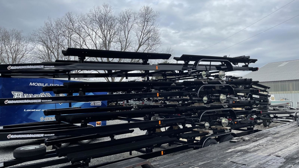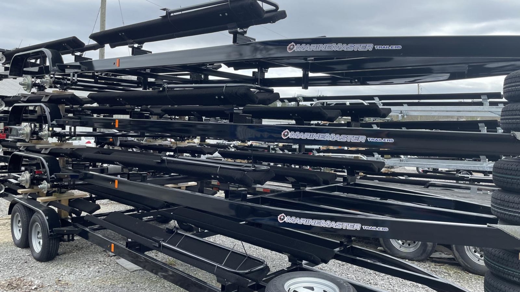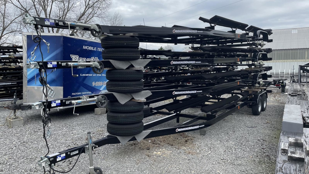 We maintain an inventory of Marine Master trailers for pontoons. Call for the latest availability.