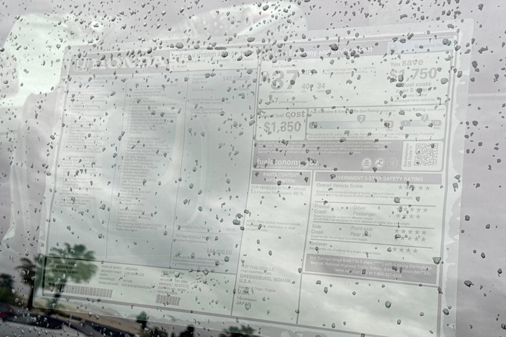 Wireless Phone Connectivity, Wheels: 19' Berlina Black, Voice Activated Dual Zone Front Automatic Air Conditioning, Vehicle Stability Assist (VSA) Electronic Stability Control (ESC), Valet Function, Trunk/Hatch Auto-Latch, Trip Computer, Transmission: Electronic Continuously Variable -inc: sport, normal, econ and snow dynamic drive modes, Transmission w/Driver Selectable Mode, Traffic Jam Assist. This Honda CR-V Hybrid has a dependable Gas/Electric I-4 2.0 L/122 engine powering this Variable transmission. Experience a Fully-Loaded Honda CR-V Hybrid Sport Touring Tracker System, Tires: 235/55R19 101H All-Season, Tire Mobility Kit, Tailgate/Rear Door Lock Included w/Power Door Locks, Strut Front Suspension w/Coil Springs, Smart Device Remote Engine Start, Smart Device Integration, Side Impact Beams, Seats w/Leatherette Back Material, Remote Releases -Inc: Proximity Cargo Access, Remote Keyless Entry w/Integrated Key Transmitter, Illuminated Entry, Illuminated Ignition Switch and Panic Button, Regenerative 4-Wheel Disc Brakes w/4-Wheel ABS, Front Vented Discs, Brake Assist, Hill Descent Control, Hill Hold Control and Electric Parking Brake, Rear Cupholder, Rear Cross Traffic Monitor (CTM)/Low Speed Braking Control, Rear Child Safety Locks, Real-Time Traffic Display, Radio: Bose Premium Sound System -inc: 9' color touchscreen, 12 speakers, HD Radio, wireless Apple CarPlay and Android Auto compatibility, Google built-in (includes 3-years unlimited data plan for in-vehicle apps) and Bluetooth streaming audio, Radio w/Seek-Scan, Clock, Speed Compensated Volume Control, Steering Wheel Controls, Voice Activation, Radio Data System and External Memory Control, Quasi-Dual Stainless Steel Exhaust w/Chrome Tailpipe Finisher, Proximity Key For Doors And Push Button Start. Visit Us Today For a must-own Honda CR-V Hybrid come see us at Buena Park Honda, 6411 Beach Blvd, Buena Park, CA 90621. Just minutes away!