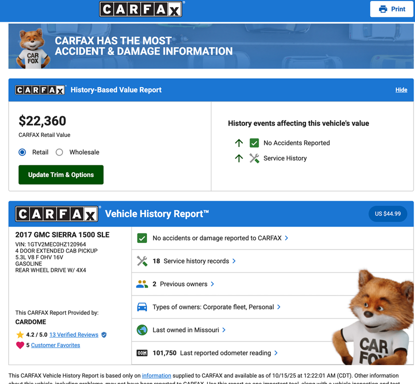 Our GMC performs well in safety tests and provides peace of mind with StabiliTrak featuring trailer sway control and hill start assist. You'll also drive assured with a rearview camera, tire pressure monitoring system, daytime running lamps, many airbags, and an available Teen Driver configurable feature. Our Sierra 1500 SLE is setting the truck standard, and we're confident you'll be impressed with just one drive! Save this Page and Call for Availability. We Know You Will Enjoy Your CarDome Auto Sales Test Drive Towards Ownership!