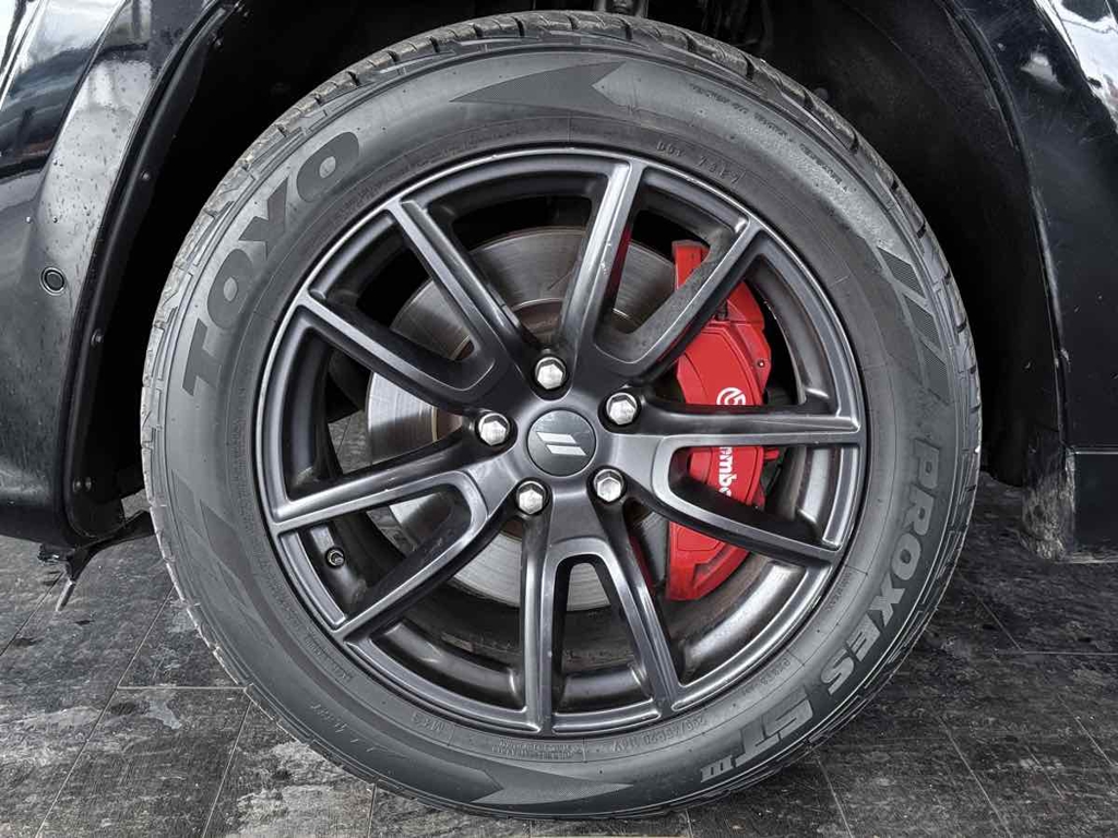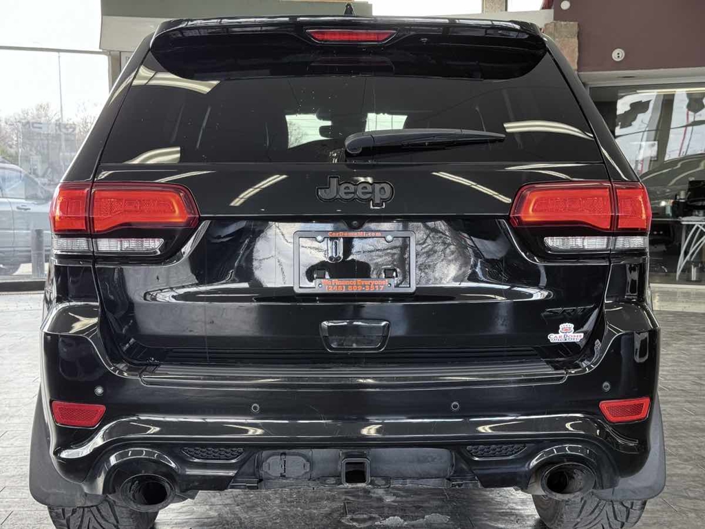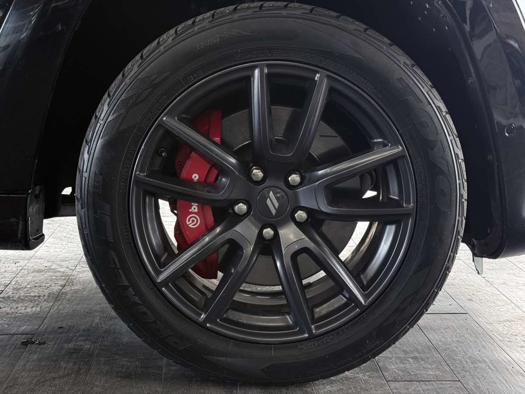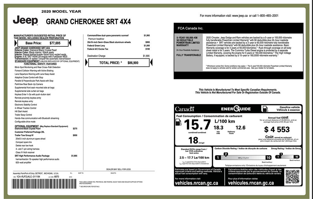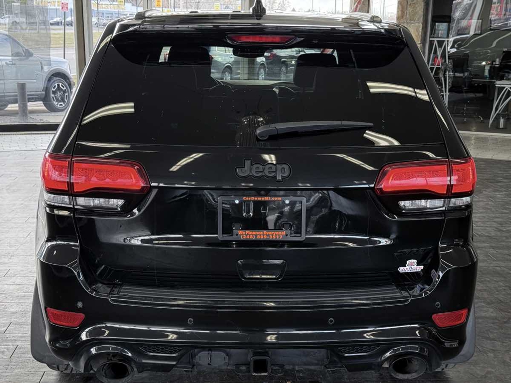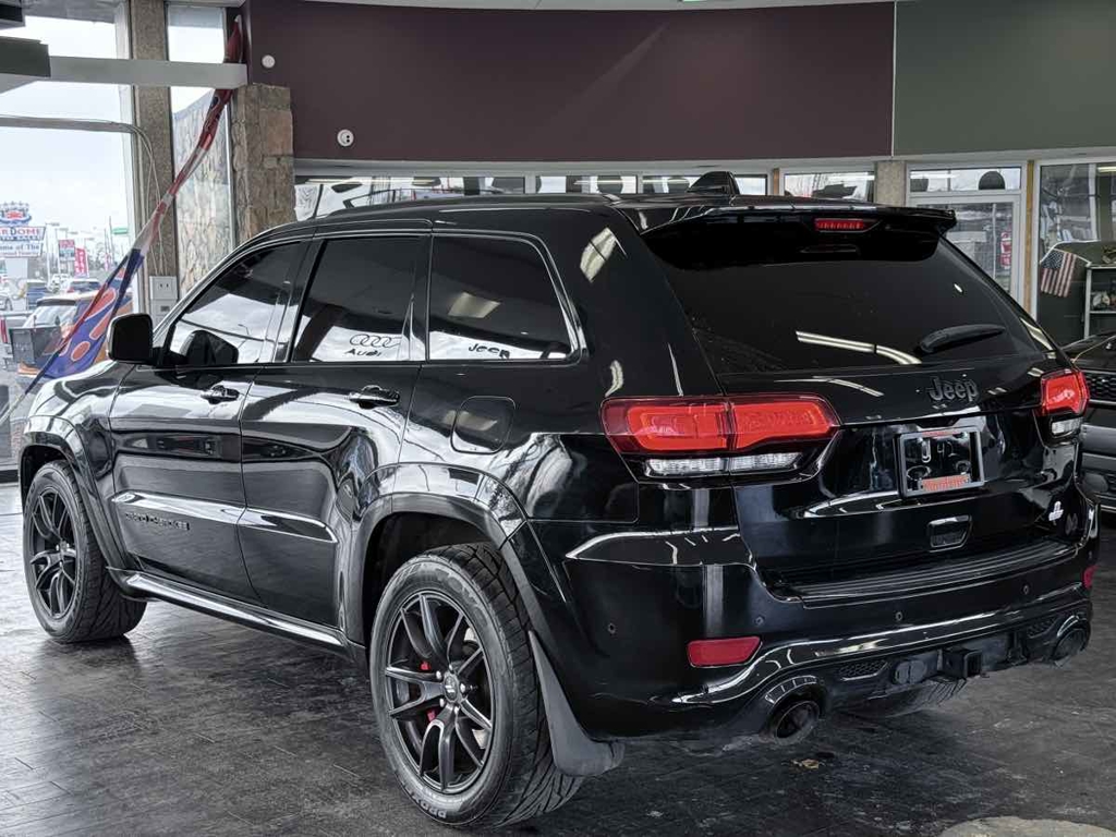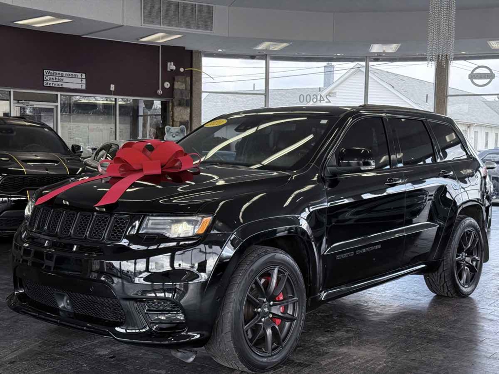 The 2020 Jeep Grand Cherokee SRT 4x4 in Diamond Black Crystal Pearl exudes an unmistakable aura of power and sophistication. Its commanding presence is matched by the potent 6.4L V8 engine, delivering a heart-pounding experience with every drive. The bold exterior is accentuated by 20" x 10" semi-gloss black aluminum wheels, offering an aggressive stance that hints at its high-performance capabilities.