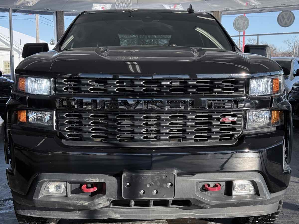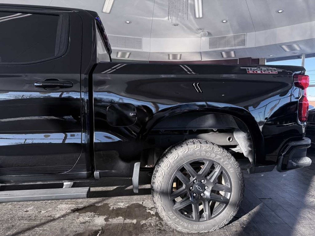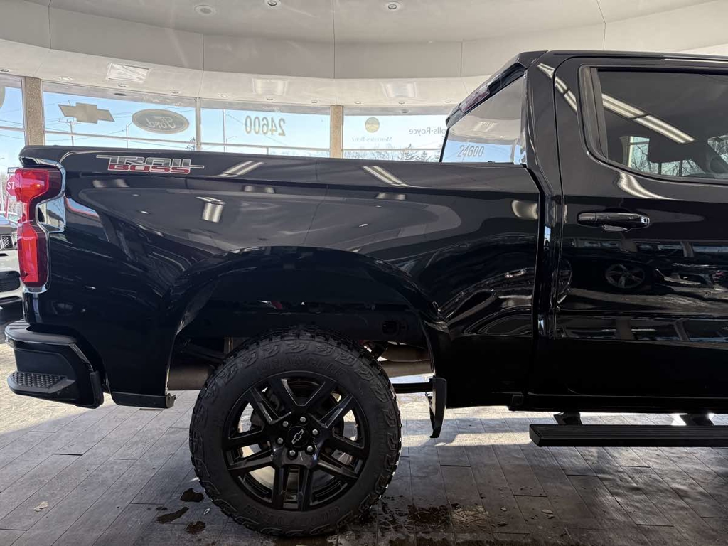BRAND NEW MOTOR FROM GM 36MO WARRANTY!! Off the road or on, our bold 2021 Chevrolet Silverado 1500 Custom Trail Boss Crew Cab 4X4 in Black puts you in charge on every drive! Motivated by a 6.2 Liter EcoTec3 V8 offering 420hp tethered to a 10 Speed Automatic transmission with tow/haul mode for confident capability. For rugged terrain, this Four Wheel Drive truck is upgraded with a two-speed transfer case, a locking rear differential, and a Z71 off-road suspension, plus shows off nearly 20mpg on the highway. Our Trail Boss looks tough with black alloy wheels and red recovery hooks adding flair to a powerful grille, heated power mirrors, a durable bedliner, tonneau cover, running boards, and the convenience of a CornerStep rear bumper plus the EZ Lift/Lower tailgate.