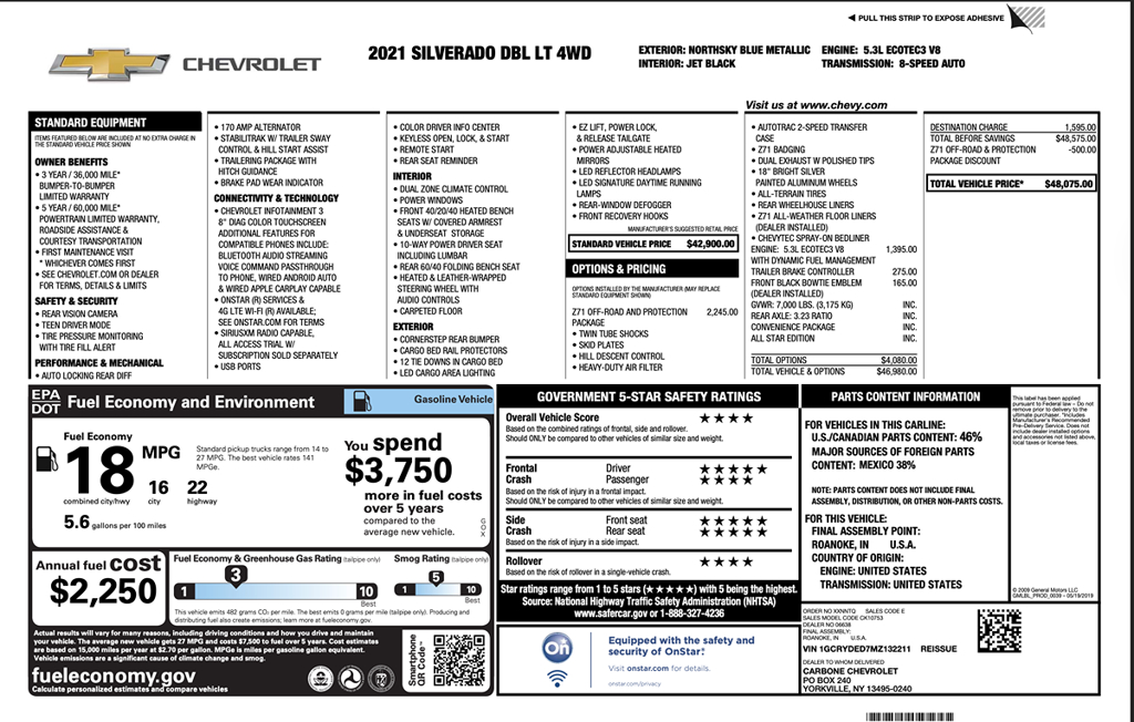 Ready to impress, our 2021 Chevrolet Silverado 1500 LT Double Cab 4X4 combines classic capability with iconic good looks that stand out in Northsky Blue Metallic! Motivated by a 5.3 Liter EcoTec3 V8 serving up 355hp connected to an 8 Speed Automatic transmission that's geared to get things done. This Four Wheel Drive truck also has a confidence-inspiring ride and returns nearly 22mpg on the highway. Rugged and stylish, our Silverado boasts LED lighting, heated power mirrors, alloy wheels, an EZ Lift power lock/release tailgate, running boards, and chrome bumpers with a rear CornerStep.