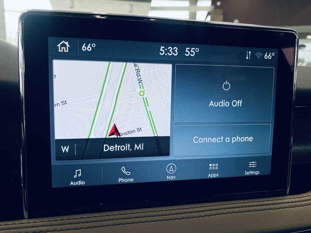 Our Reserve cabin is tailored for excellence with Bridge of Weir leather heated front seats, a leather-wrapped power steering wheel, dual-zone automatic climate control, and premium technologies for a connected ride. The result is an eye-friendly interior with a 12.3-inch digital instrument panel, an 8-inch touchscreen, full-color navigation, Android Auto/Apple CarPlay, Bluetooth, and a 14-speaker Revel sound system. Another exclusive audio benefit: vehicle chimes recorded by the Detroit Symphony Orchestra!