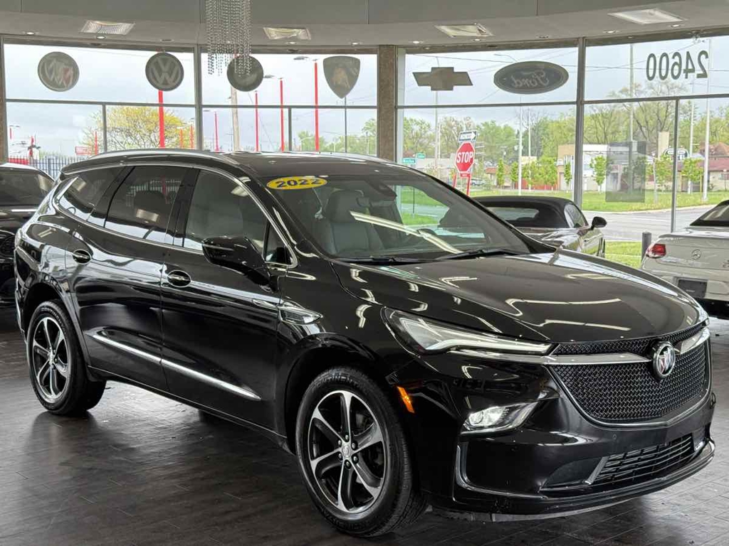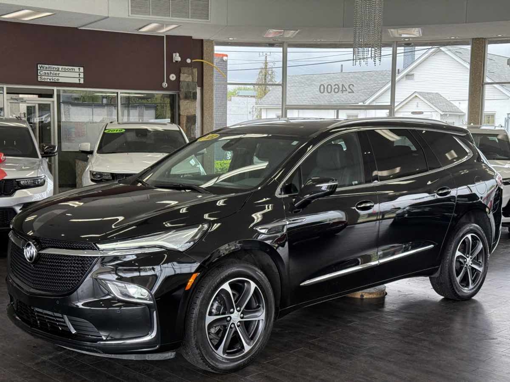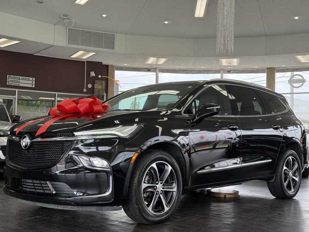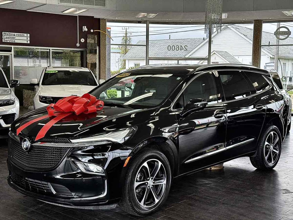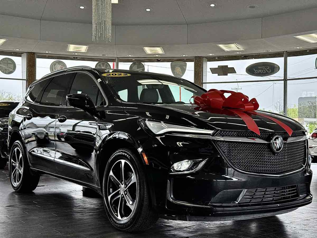 Move up to our 2022 Buick Enclave Essence in Ebony Twilight Metallic and make the most out of family driving! Motivated by a 3.6 Liter V6 delivering 310hp connected to a 9 Speed Automatic transmission for refined strength. This Front Wheel Drive SUV also keeps your whole crew comfortable with a Premium Ride suspension, and it can see nearly 26mpg on the highway. Strong sculpted lines add a sense of sophistication to our Enclave, which shows off LED lighting, alloy wheels, heated power mirrors, roof rails, dual-exhaust outlets, and the upscale convenience of a hands-free liftgate.