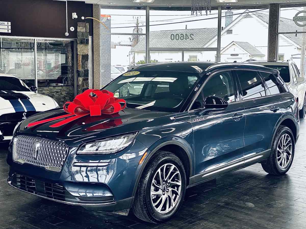 Our compelling 2022 Lincoln Corsair Standard AWD catches your eye with premium features and sophisticated Ocean Drive Blue good looks! Powered by a TurboCharged 2.0 Liter EcoBoost 4 Cylinder supplying 250hp paired to a paddle-shifted 8 Speed Automatic transmission so you can command the miles with confidence. This All Wheel Drive SUV also returns nearly 29mpg on the highway with a sculpted design that demands attention. Deluxe details include signature LED lighting, heated power-folding mirrors, a power liftgate, bright-tipped dual-exhaust outlets, alloy wheels, and the exclusive Lincoln Embrace driver-welcome system.