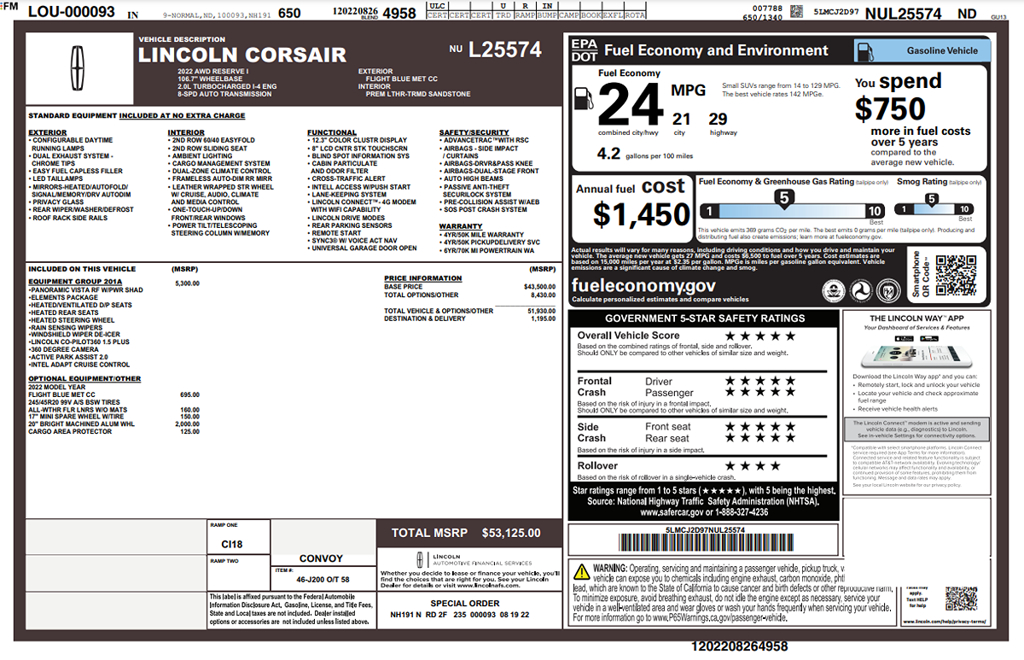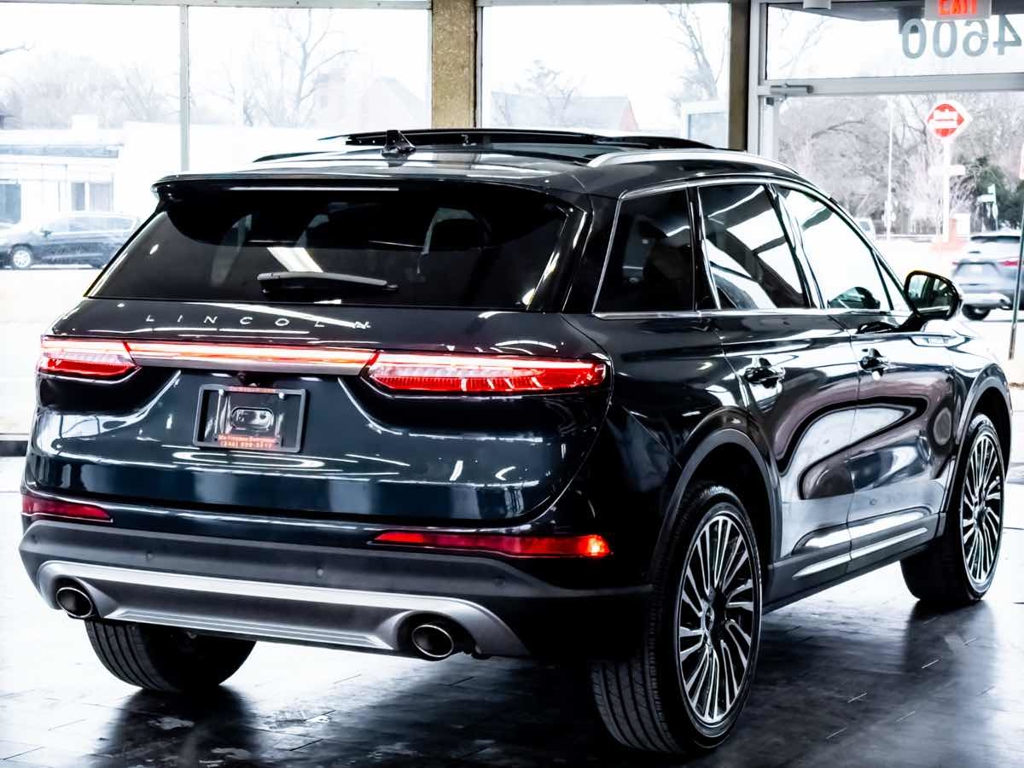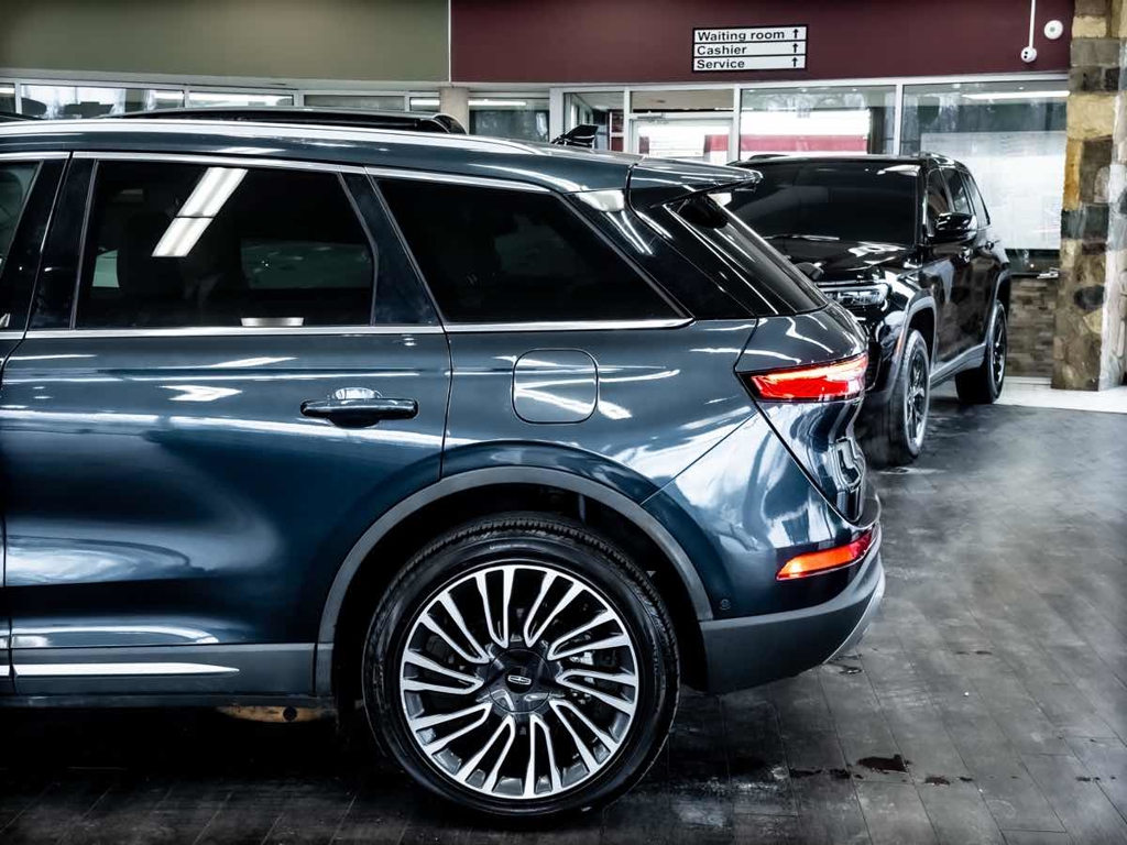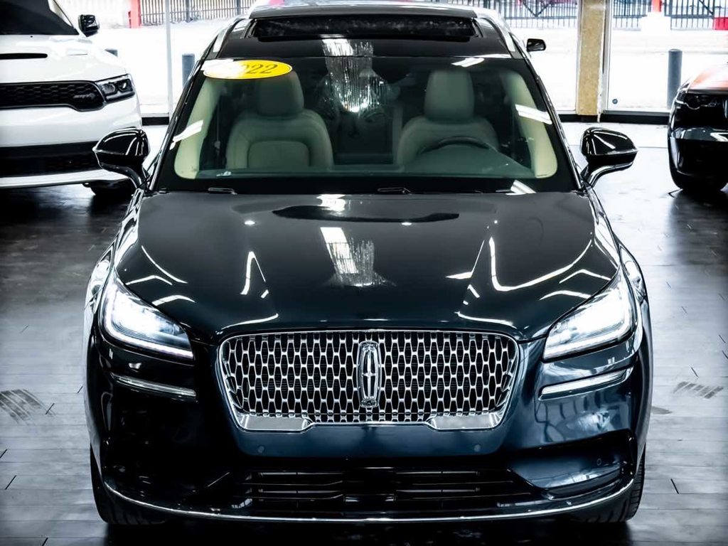 Our 2022 Lincoln Corsair Reserve AWD commands the road with remarkable style and authority in Flight Blue! Motivated by a TurboCharged 2.0 Liter EcoBoost 4 Cylinder delivering 250hp tethered to a paddle-shifted 8 Speed Automatic transmission. This All Wheel Drive SUV also masters tricky conditions with a multimode traction system, and it scores nearly 29mpg on the highway. High-end details enhance the good looks of our Lincoln Corsair with signature LED lighting, the Lincoln Embrace welcome system, a power liftgate, roof rails, alloy wheels, dual-exhaust outlets, sunroof, and heated power-folding mirrors with built-in turn signals.