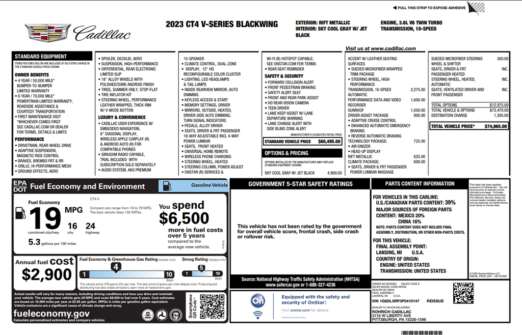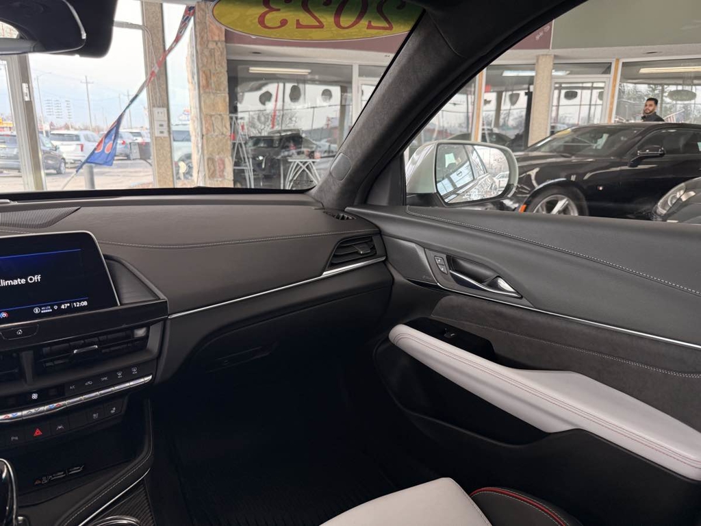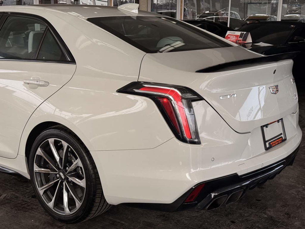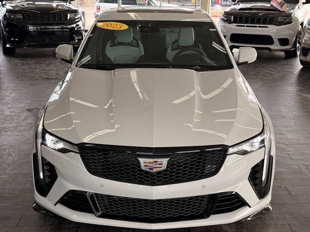 Our exciting 2023 Cadillac CT4 V-Series Blackwing Sedan brings you exhilarating power in Rift Metallic! Motivated by a Twin-TurboCharged 3.6 Liter V6 offering 472hp to a paddle-shifted 10 Speed Automatic transmission for flying to 60mph in a brisk 3.9 seconds with a top speed north of 189mph. Magnetic Ride Control and Brembo brakes deliver track-tuned handling, and this Rear Wheel Drive sedan scores nearly 24mpg on the highway. Built to stir your soul, our Cadillac CT4 boasts LED lighting, front cornering lamps, a rear spoiler, gloss-black rocker moldings, a sunroof, quad exhaust outlets, and alloy wheels.