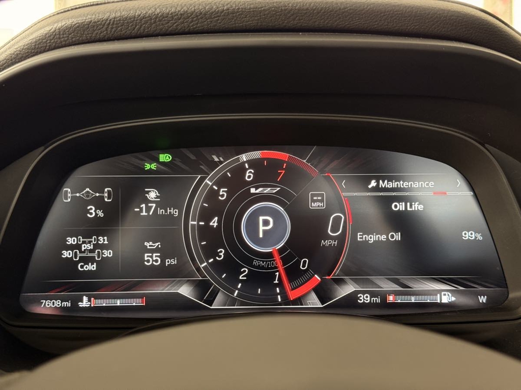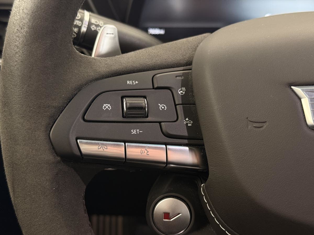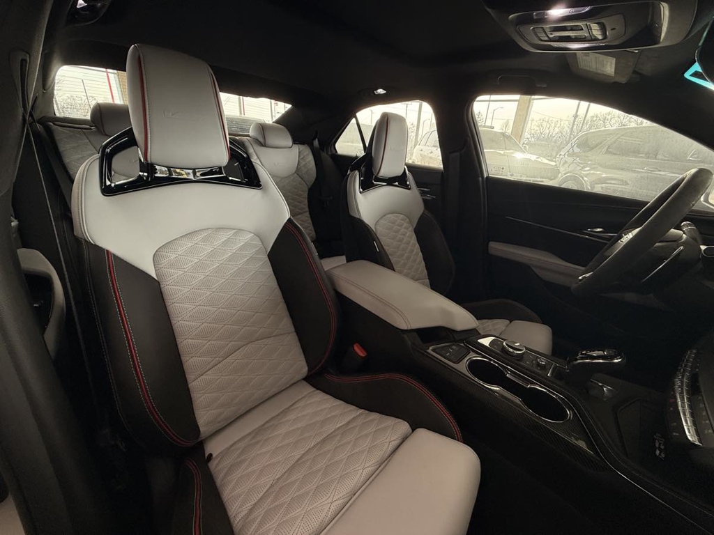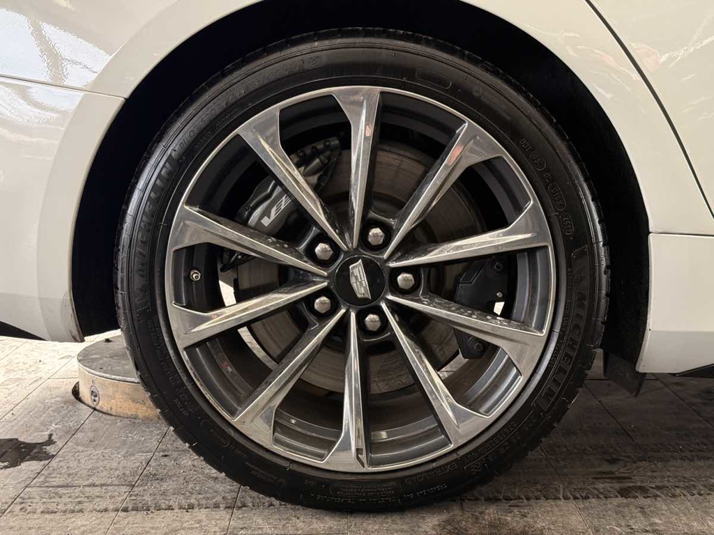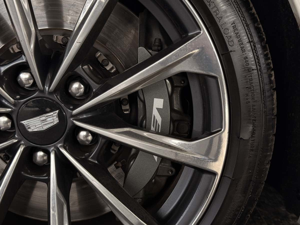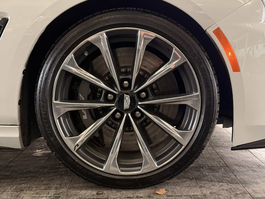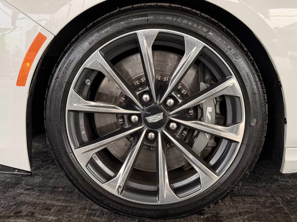 The driver-centric layout of our V-Series Blackwing cabin treats your inner enthusiast to heated/cooled Intelux front performance seats with power bolsters, a heated leather power steering wheel, dual-zone automatic climate control, alloy pedals, keyless access/ignition, and remote start. You can also enjoy the digital convenience of a 12-inch driver display, an 8-inch touchscreen, full-color navigation, wireless Apple CarPlay®/Android Auto®, Bluetooth®, WiFi compatibility, wireless charging, and a stunning AKG audio system.