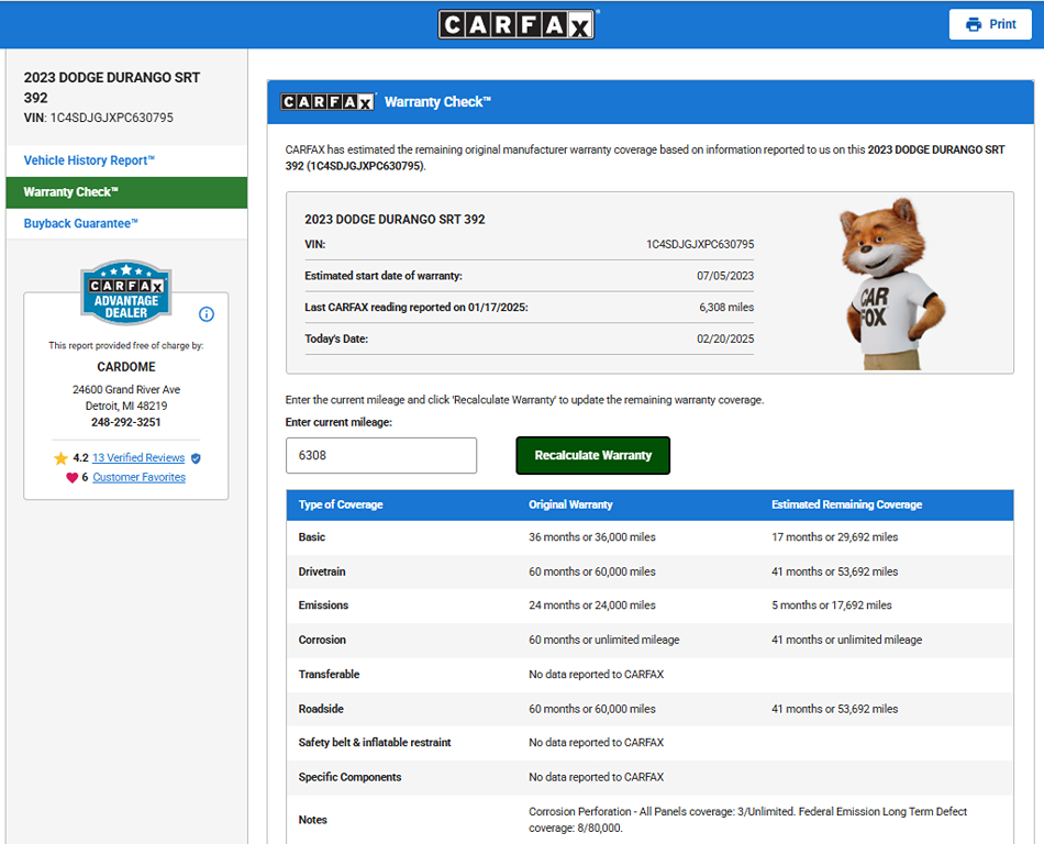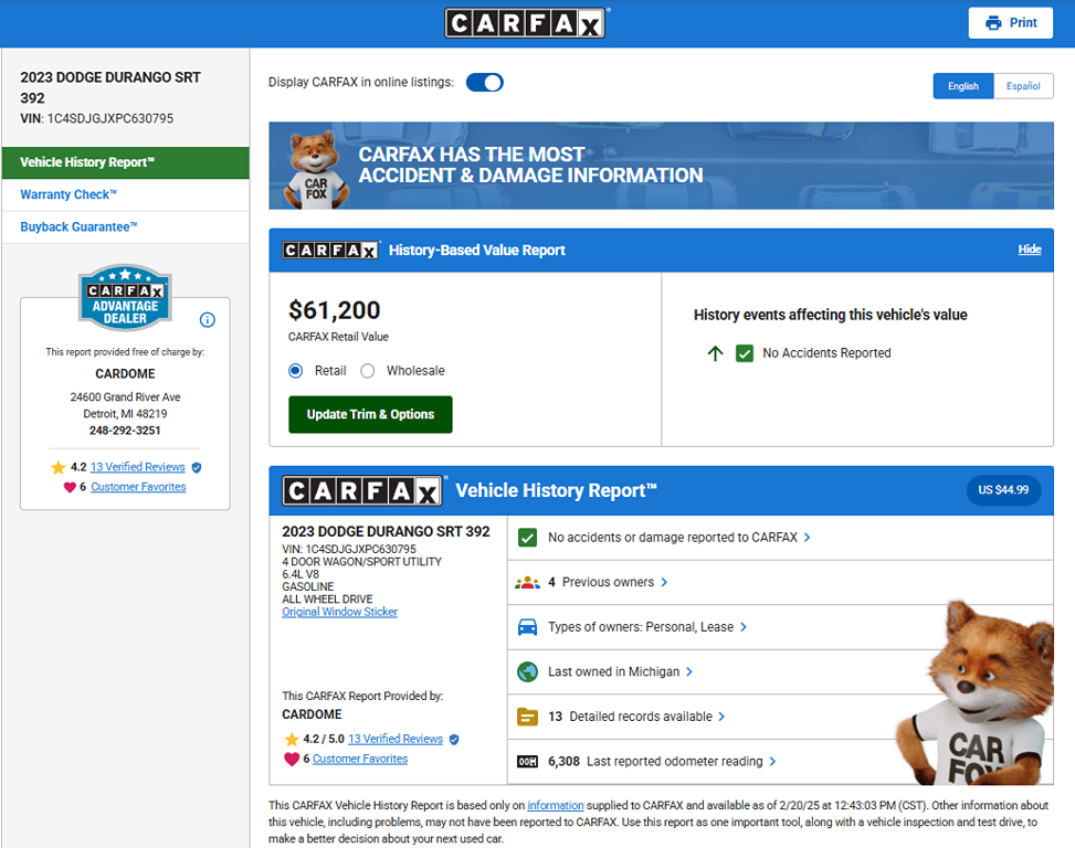Advanced Dodge safety systems include adaptive cruise control, front/rear automatic braking, a rearview camera, a blind-spot monitor, lane-keeping assistance, parking sensors, and more. Our dynamic Durango SRT 392 Plus is terrific at towing, too! Save this Page and Call for Availability. We Know You Will Enjoy Your Test Drive Towards Ownership!
