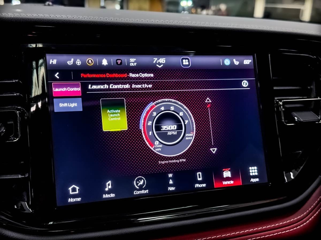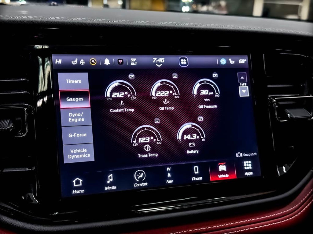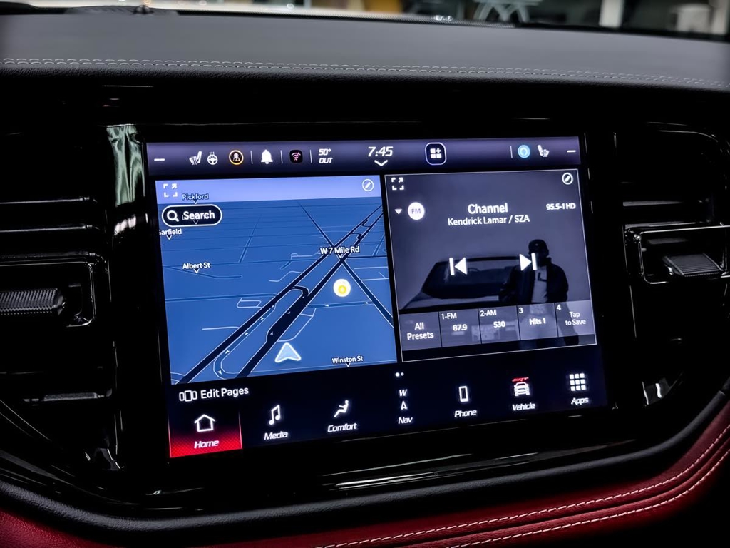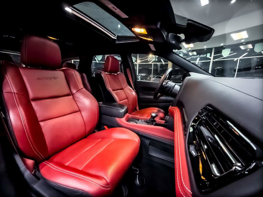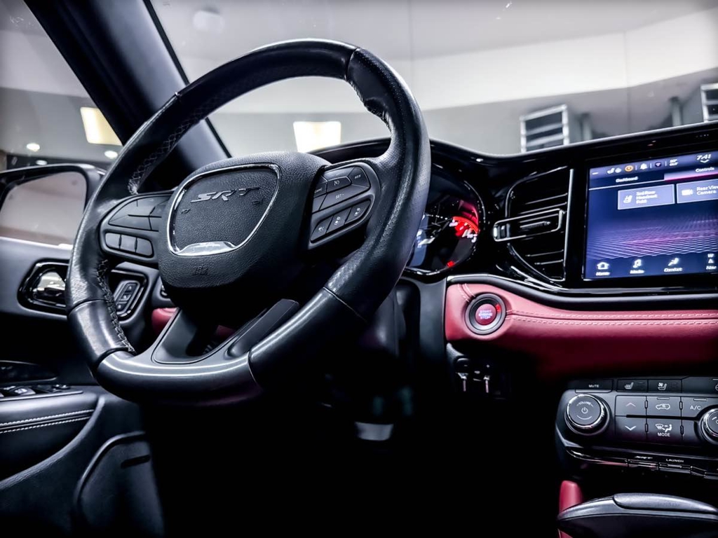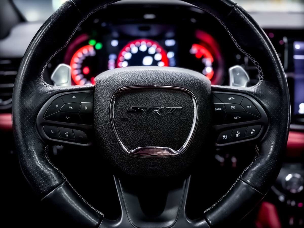 Our impressive SRT 392 Premium cabin rewards you with heated/ventilated Laguna leather power front seats, heated second-row captain's chairs, a flexible third row, a heated leather power steering wheel, tri-zone automatic climate control, carbon-fiber accents, and a hand-wrapped instrument panel. Harman Kardon audio delivers a hi-fi soundtrack to support SRT Performance Pages, a 10.1-inch touchscreen, full-color navigation, WiFi compatibility, Android Auto/Apple CarPlay, Bluetooth, voice command, and wireless charging.