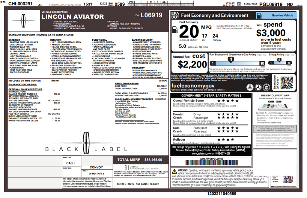 • VIN: 5LM5J9XC5PGL06919
