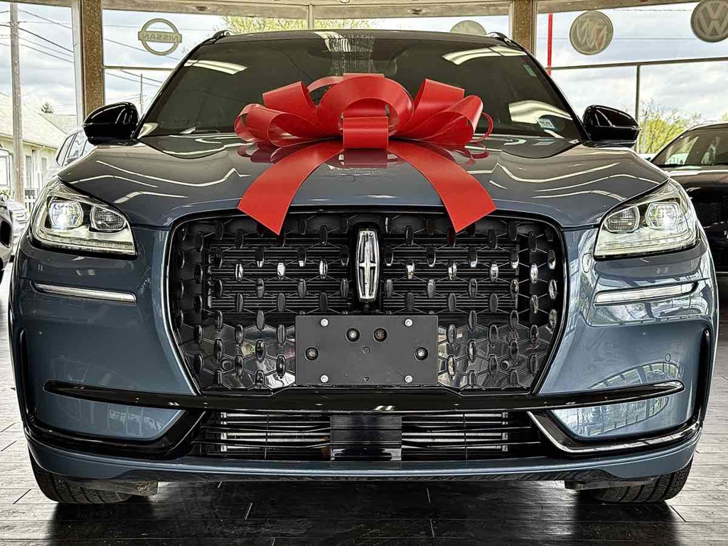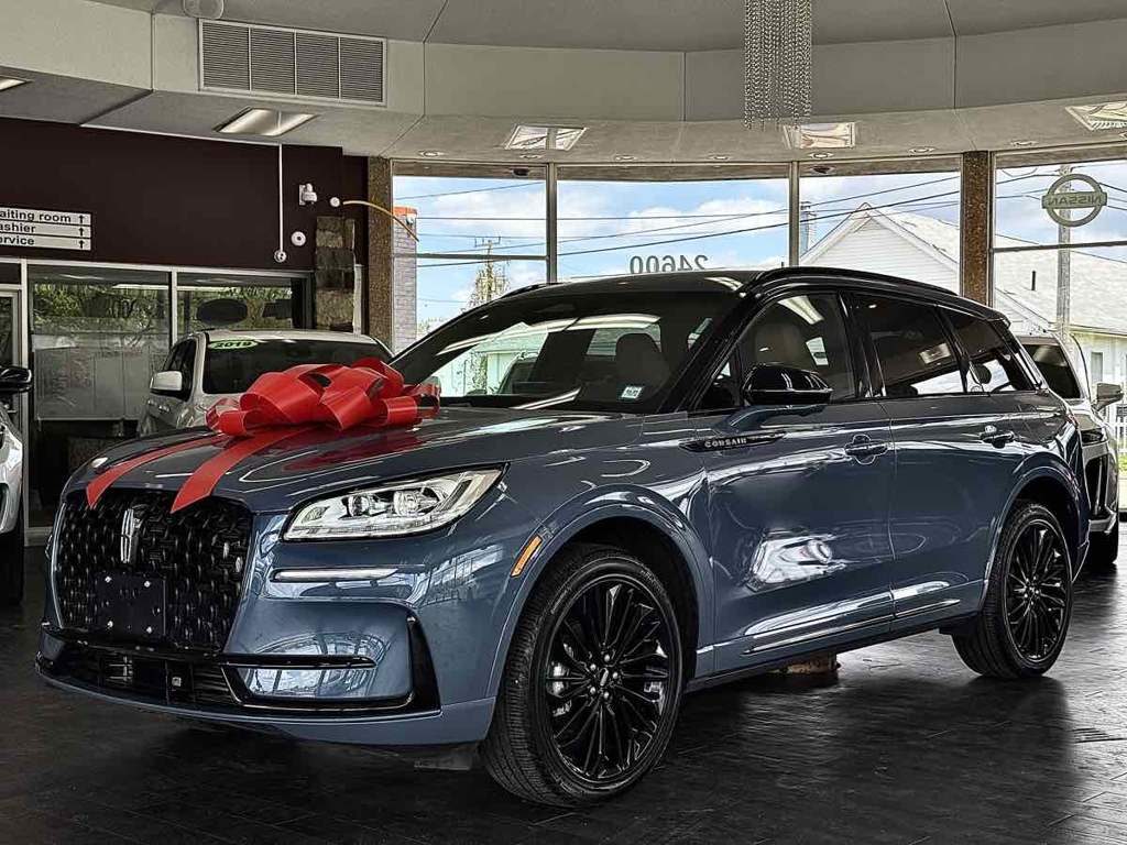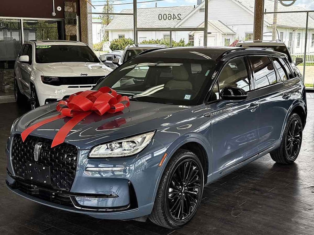 Our Whisper Blue 2023 Lincoln Corsair Reserve Collection II AWD is an oasis of luxury in a desert of dull SUVs! Motivated by a TurboCharged 2.0 Liter 4 Cylinder serving up 250hp to a paddle-shifted 8 Speed Automatic transmission for a spirited dash of sporty utility. Featuring a multimode performance system, this All Wheel Drive SUV is eager for adventure and achieves nearly 28mpg on the highway. Elevated Lincoln design comes into view with jeweled LED headlamps, a hands-free liftgate, roof rails, polished dual exhaust tips, Embrace welcome lighting, heated power-folding mirrors, and premium alloy wheels.