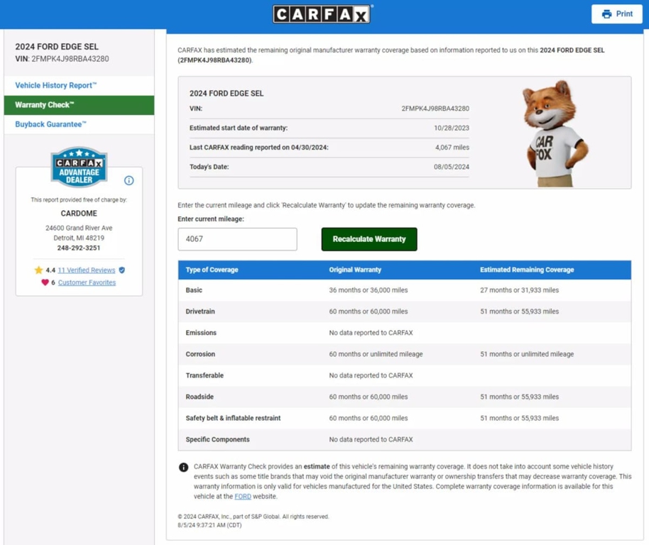 Ford safeguards your journeys with smart Co-Pilot360 systems like automatic braking, blind-spot monitoring, lane-keeping assistance, a rearview camera, hill-start assistance, tire-pressure monitoring, Safety Canopy airbags, and more! Own our Edge SEL and cut through the crowd in style! Save this Page and Call for Availability. We Know You Will Enjoy Your CarDome Auto Sales Test Drive Towards Ownership!